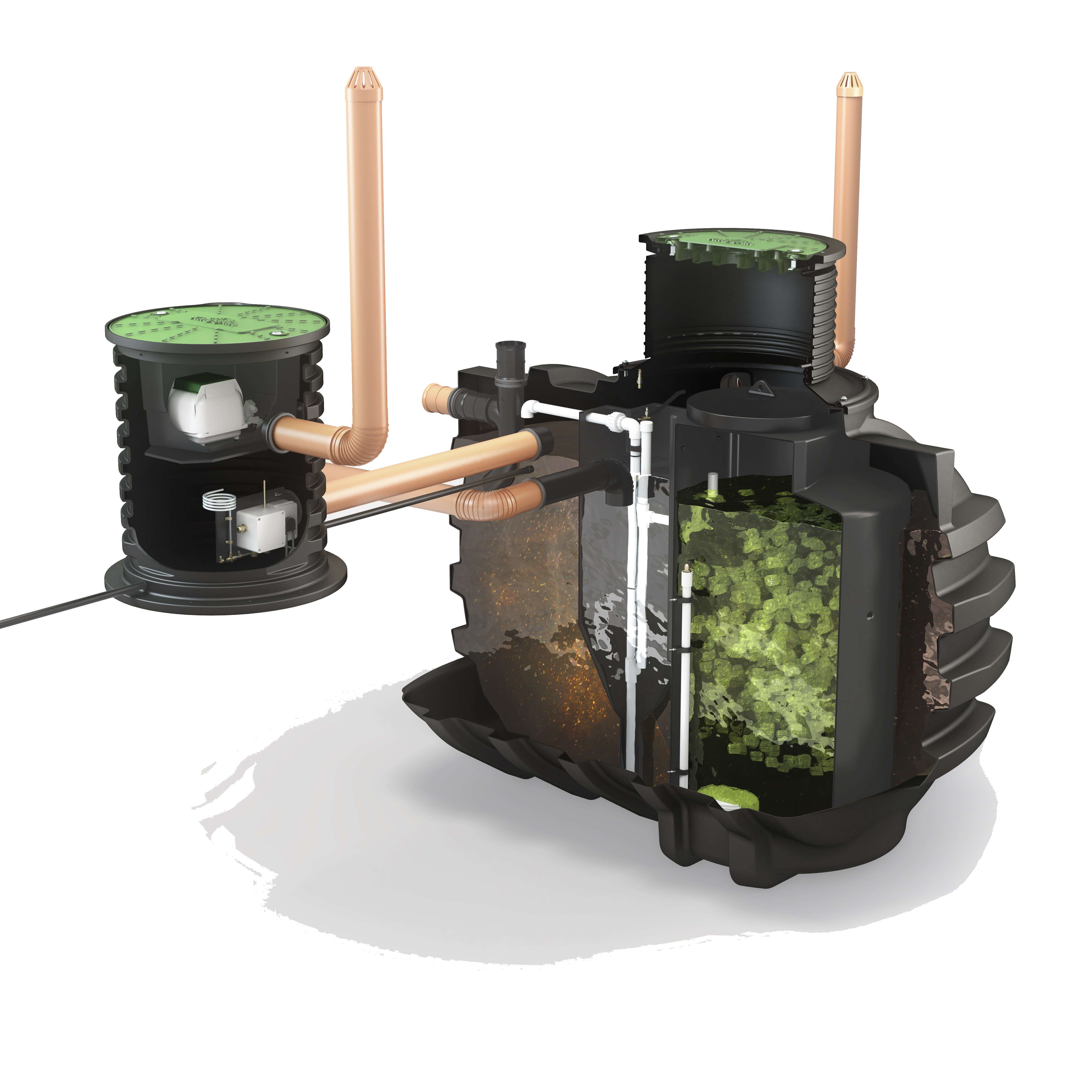 Ta biologiczna oczyszczalnia ścieków BioFicient jest dla 6 osób. Zbiornik wykonany w technologii rotomouldingu, dzięki temu jest 20 lat gwarancji.Zbiornik jest mocny, ma grube ściany, wykonany jest w technologii rotomouldingu, dzięki temu objęty jest gwarancją na 20 lat. Do instalacji wystarczy niewielka powierzchnia, a po montażu widoczny jest jedynie zielony otwór włazowy, który zamykany jest na dwa zamki w celach bezpieczeństwa. Miejsce po montażu jest estetyczne i nie rzucające się w oczy. Instalacja możliwa jest nawet przy wysokim poziomie wód gruntowych oraz wykonanie przyłączenia rury ze ściekiem nawet na głębokości 150cm od poziomu terenu. Usuwanie osadu wystarczy raz w roku . Istnieje tez możliwość zagłębienia przyłącza do 150cm.