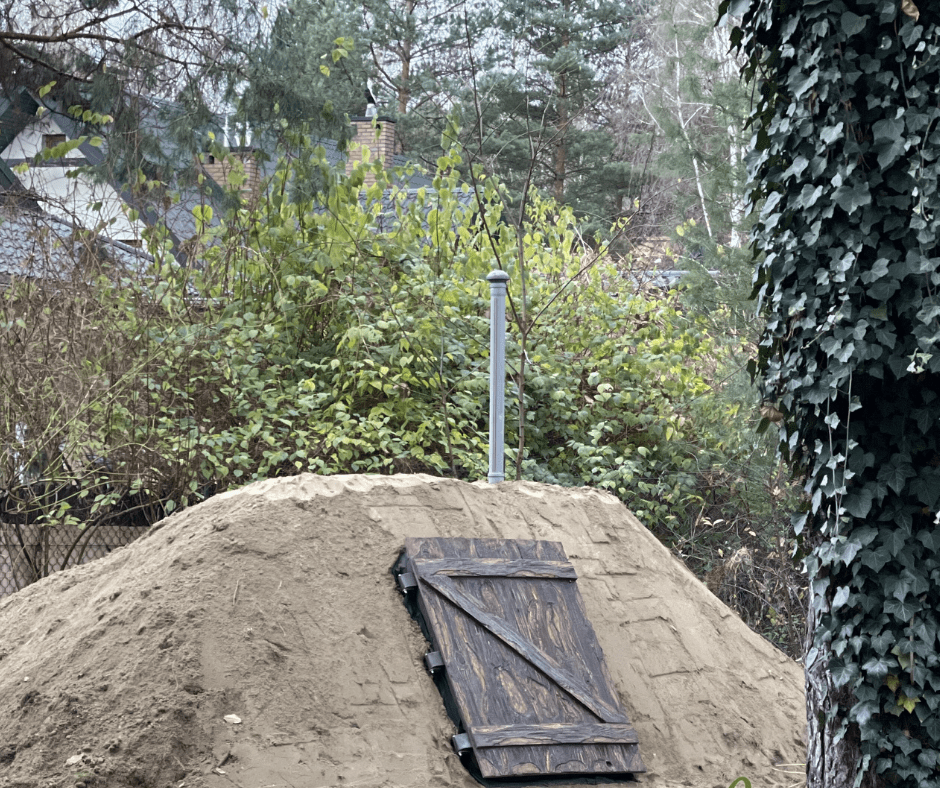 Piwnica ogrodowa, nowoczesna ziemianka, wejście od przodu, średnica 250cm, wys. 270cm