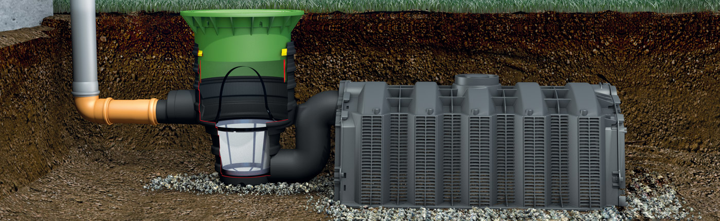 •Filtr wody deszczowej(studzienka wyposażona w kosz lub sito), •Rury kanalizacyjne doprowadzające wodę do tunelirozsączających, oraz ewentualnie studzienki kanalizacyjne, •Tunelerozsączającepołączone w zespół o odpowiedniej pojemności •Wywietrznik do odpowietrzenia systemu