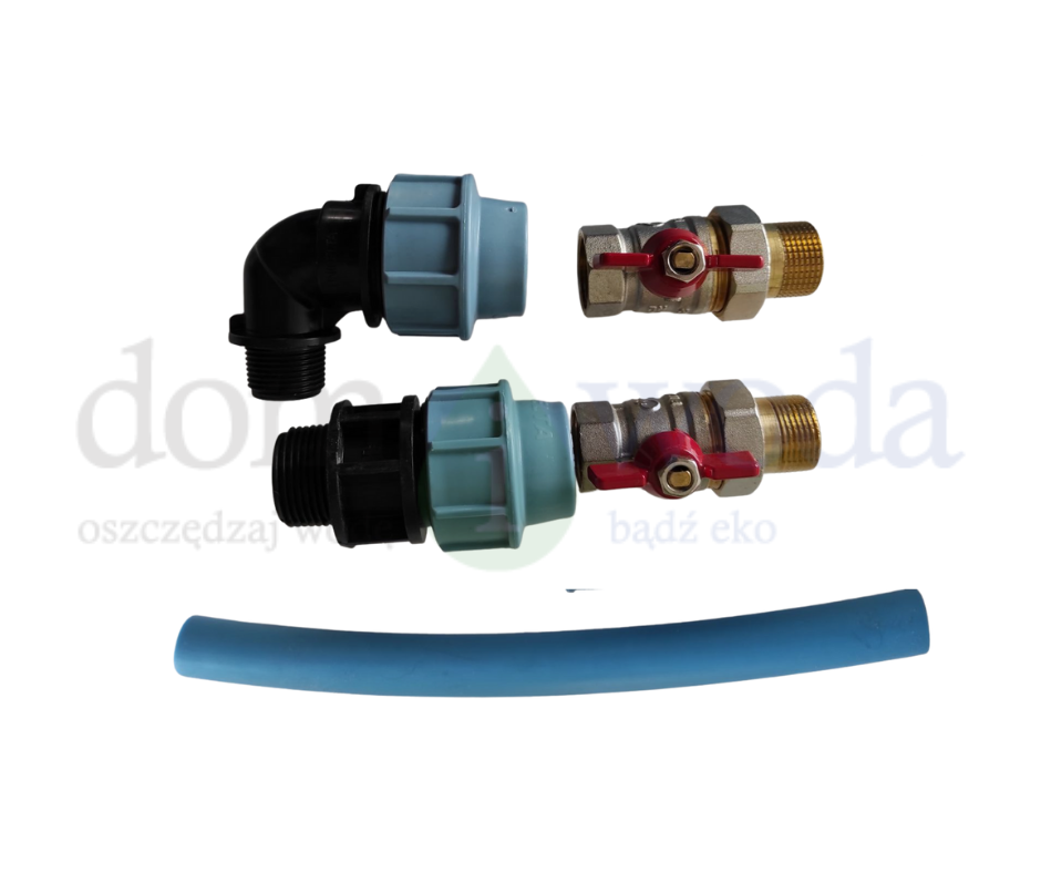 Zestaw połączeniowy jest kompletny do podłączenia dwóch zbiorników naziemnych i pompy powierzchniowej. Nie można jednocześnie wykorzystywać deszczówki z dwóch zbiorników, ale dzięki temu zestawowi można bezpiecznie podłaczać pompę do zbiornika, ktróry będziemy opróżniać z deszczówki.