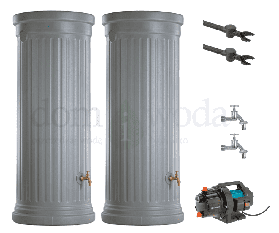 Zestaw służy do naziemnego zbierania wody deszczowej, podłączając zbieracz wody deszczowej. W zestawie jest pompa naziemna (powierzchniowa), przenośna, dzieki niej możesz łatwo korzystać ze zgromadzonej wody w każdym zbiorniku. Podłącz pompę do tego zbiornika, gdzie jest zebrana deszczówka. Wykorzystaj wodę do podlewana i przydomowych porządków. Pompa posiada wygodną rączkę do jej przenoszenia. Ma odpowiednie ciśnienie do podlewania ogrodu, kwiatów, wystarczy, że podłączysz do niej swój wąż ogrodowy.