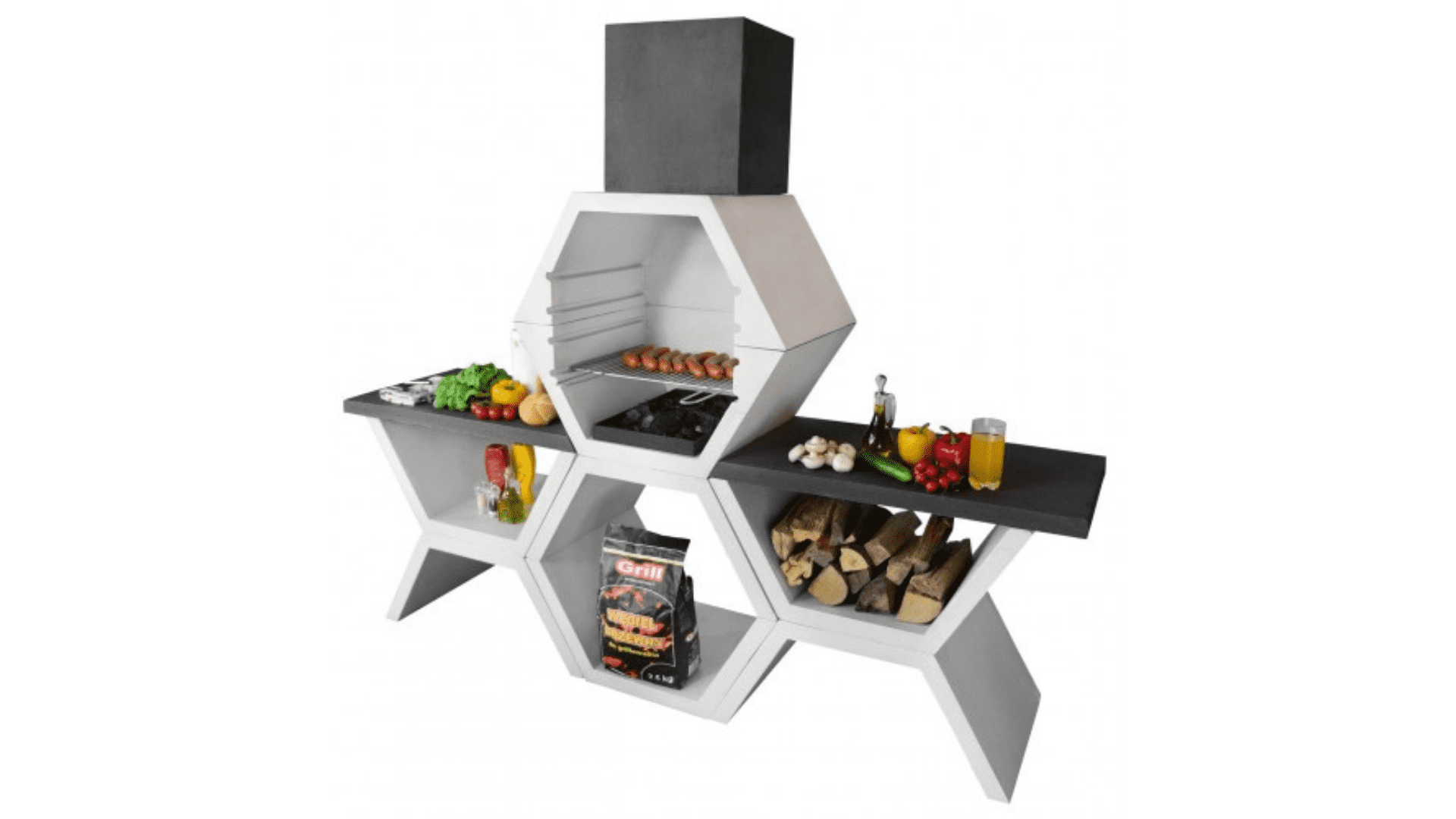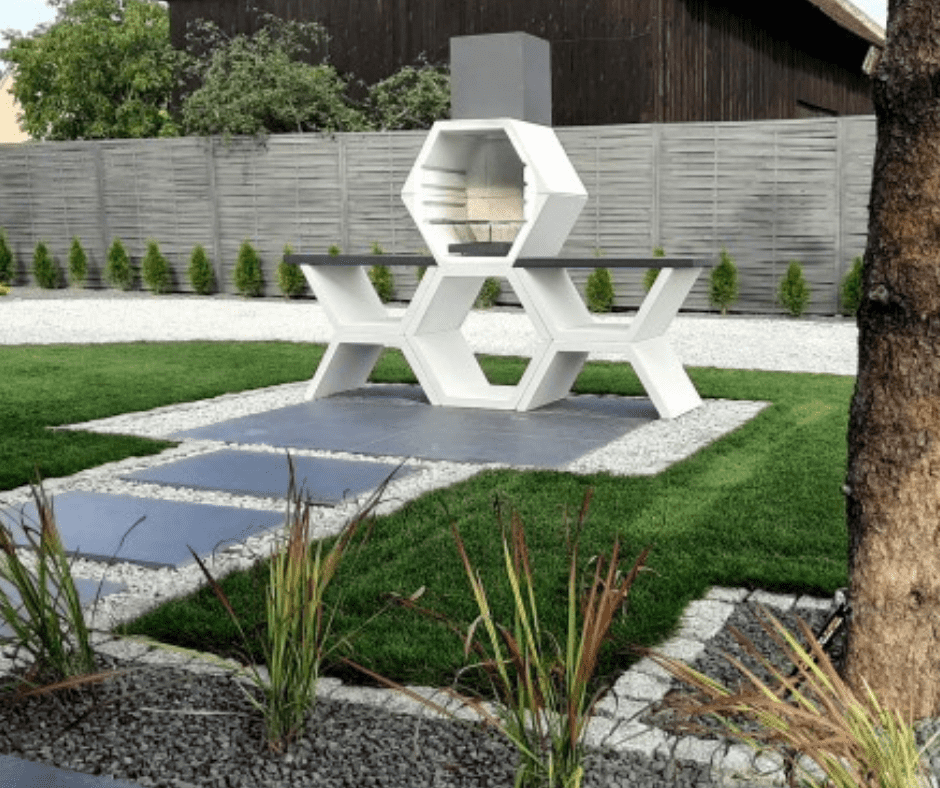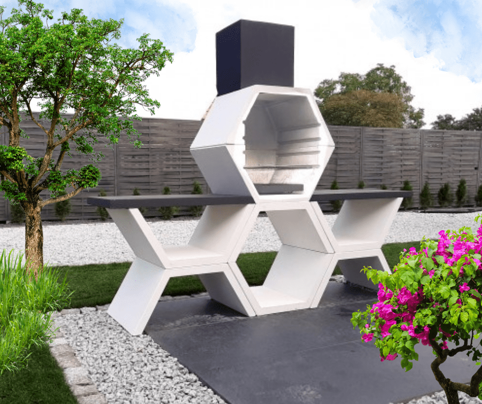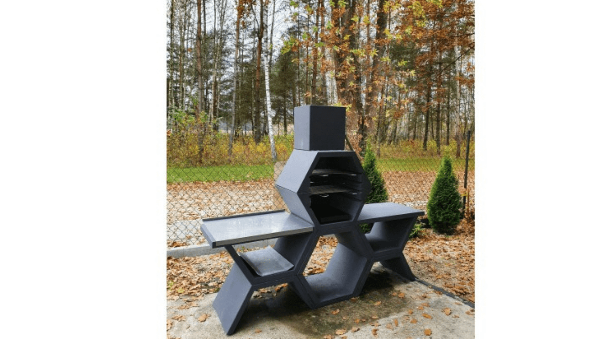 Grill betonowy jest wytrzymały, mrozoodporny, dodatkowo wszystkie elementy betonowe zostały wzmocnione żebrowaną stalą.