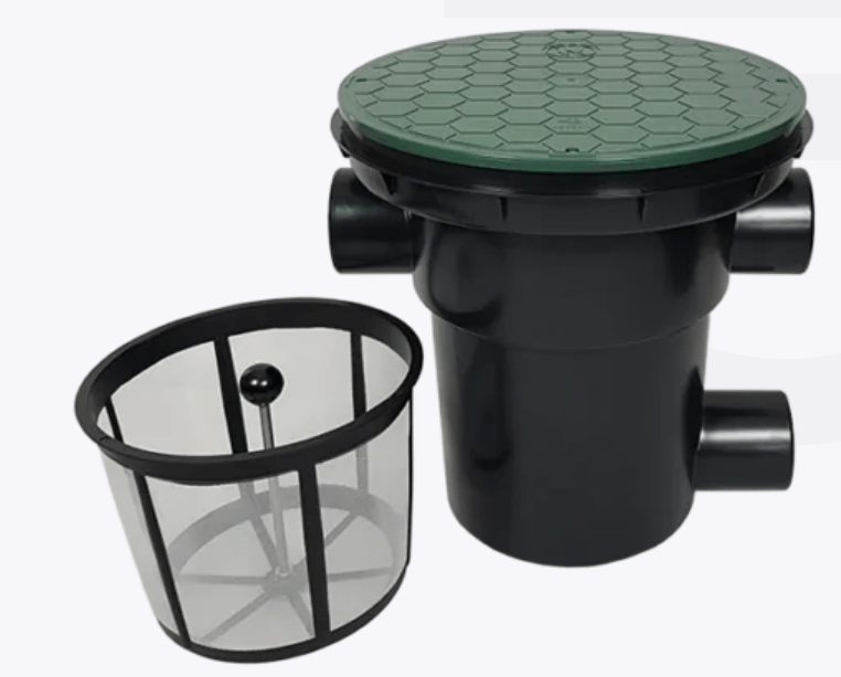 Ochrona w każdych warunkach – kosz filtrujący radzi sobie z wodą deszczową z dachów o powierzchni do 150 m², a zintegrowany przelew burzowy z sitem działa jak bezpieczne odprowadzenie wody podczas intensywnych opadów lub w razie zatkania filtra.