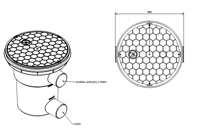 Przelew burzowy możesz wpiąć w sieć kanalizacyjną lub podłączyć do wylotu. Wylot z filtra podłącz dozbiornika na wodę deszczową lub w przypadku odprowadzenia wody do gruntu, do systemu rozsączania z tuneli rozsączających.