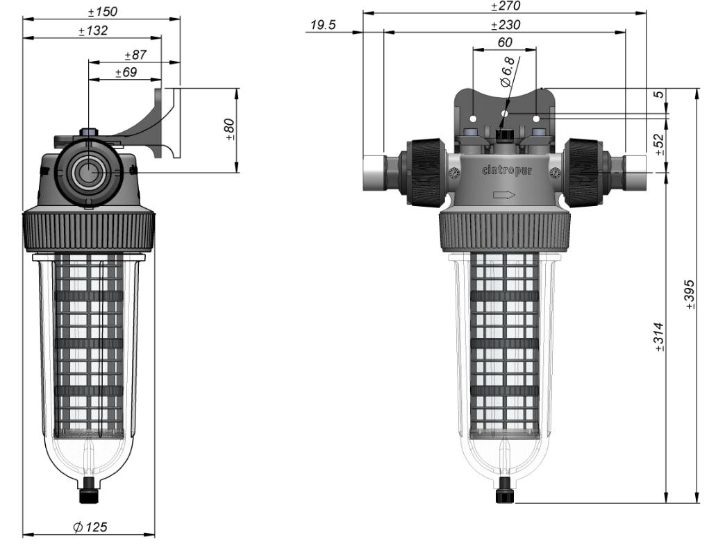 Opcje: Mocowanie ścienne z PP + 30% GF, zawór spustowy ¼ ‘’