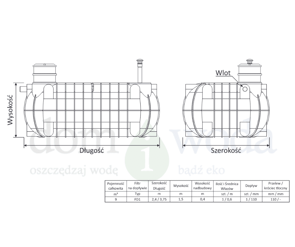 Zbiornik doskonale sprawdzi się do podlewania ogrodu, zasilania spłuczek toaletowych oraz innych zastosowań użytkowych. Możliwość wyposażenia w dodatkowe akcesoria, w tym pompy.