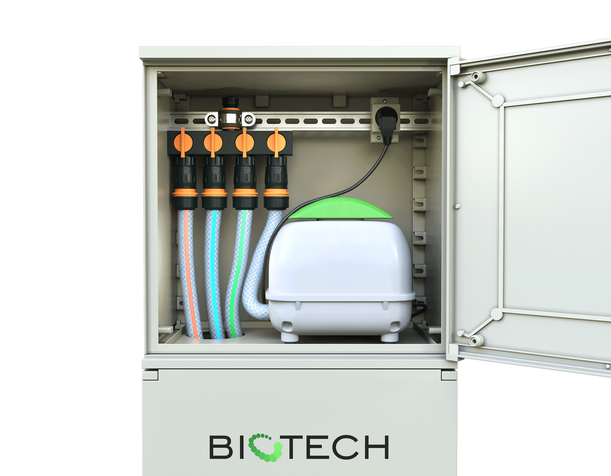 Szafka z tworzywa z dmuchawą i zaworami.
