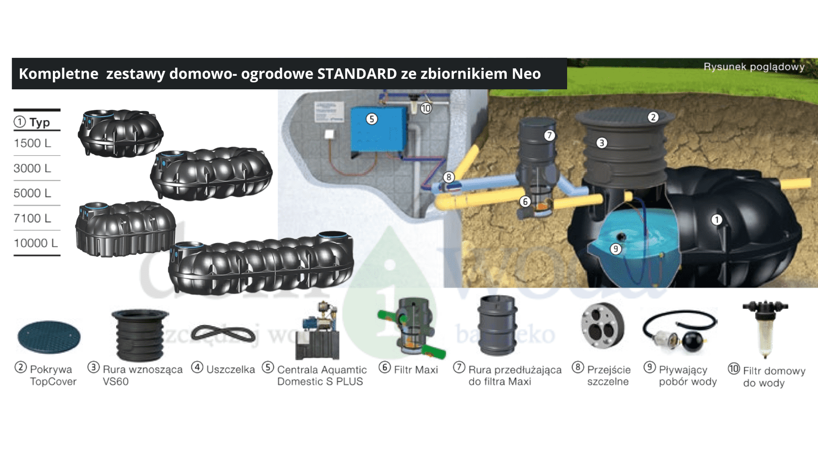 Zobacz zestawy domowo- ogrodowe STANDARD, z różnymi rozmiarami zbiornika Neo: