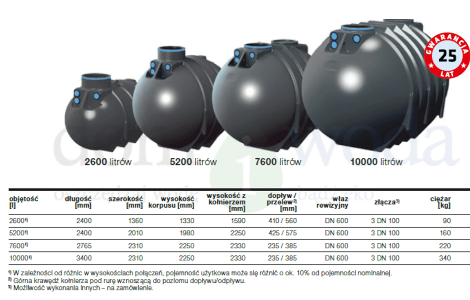 Możliwość posadowienia w wodzie gruntowej do 1/3 wysokości zbiornika.