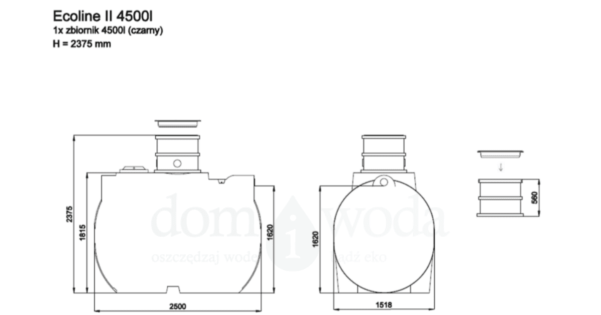 Pokrywa i nadbudowa jest w zestawie. Wyposażony w 3 przyłącza ø 110.