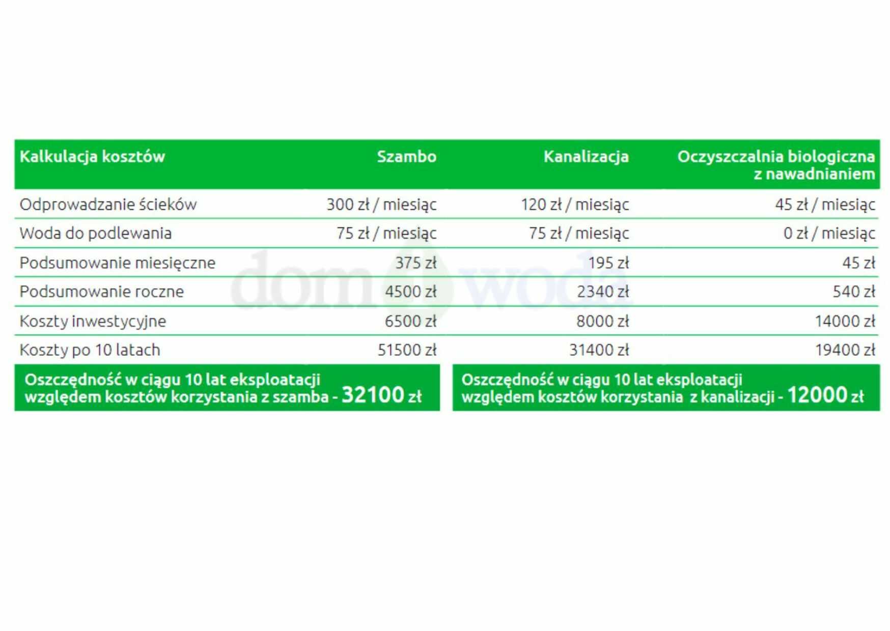 W sytuacji podłączenia budynku do zbiornika bezodpływowego (szamba) użytkownik narażony jest zarówno na częste wywozy ścieków jak i na dyskomfort związany z przepełnieniem zbiornika w najmniej oczekiwanych momentach np. tuż przed weekendem. Jest to związane również z ciągle wzrastającymi kosztami wywozu. W takiej sytuacji jednym z rozwiązań jest modernizacja istniejącego zbiornika na ścieki bytowe do pełnobiologicznej, bezzapachowej oczyszczalni ścieków BIO EASY FLOW. Odprowadzenie oczyszczonych ścieków odbywać się może zarówno do gruntu, jak i na poletko rozsączające lub na rabaty z zielenią. Zwrot inwestycji w modernizację zbiornika na bezzapachową oczyszczalnię ścieków BIO EASY FLOW już po 2-3 latach eksploatacji, a każdego następnego roku zyskujesz około 3000 zł.