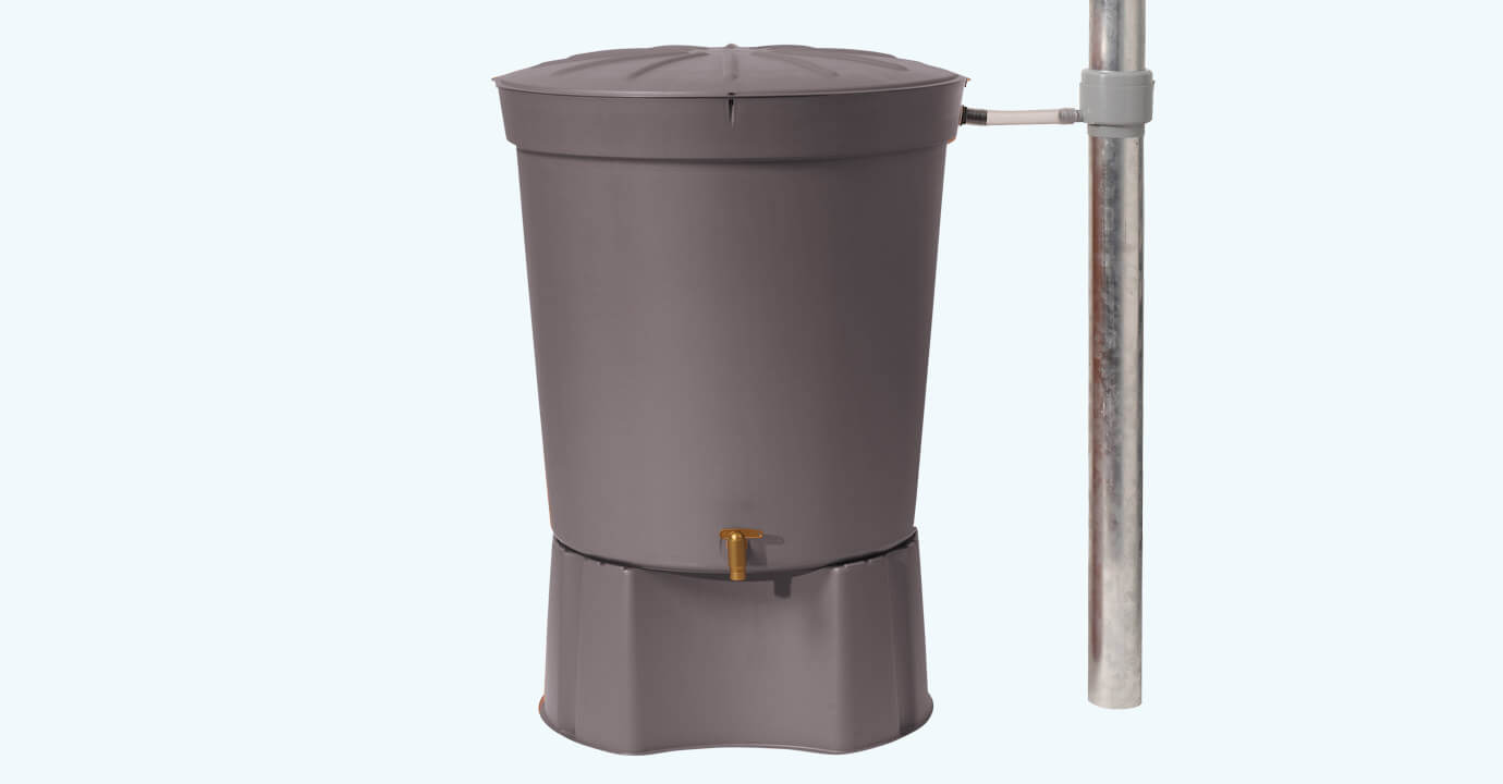300-litrowy grafitowy zbiornik Lanzarote skutecznie zbiera deszczówkę.