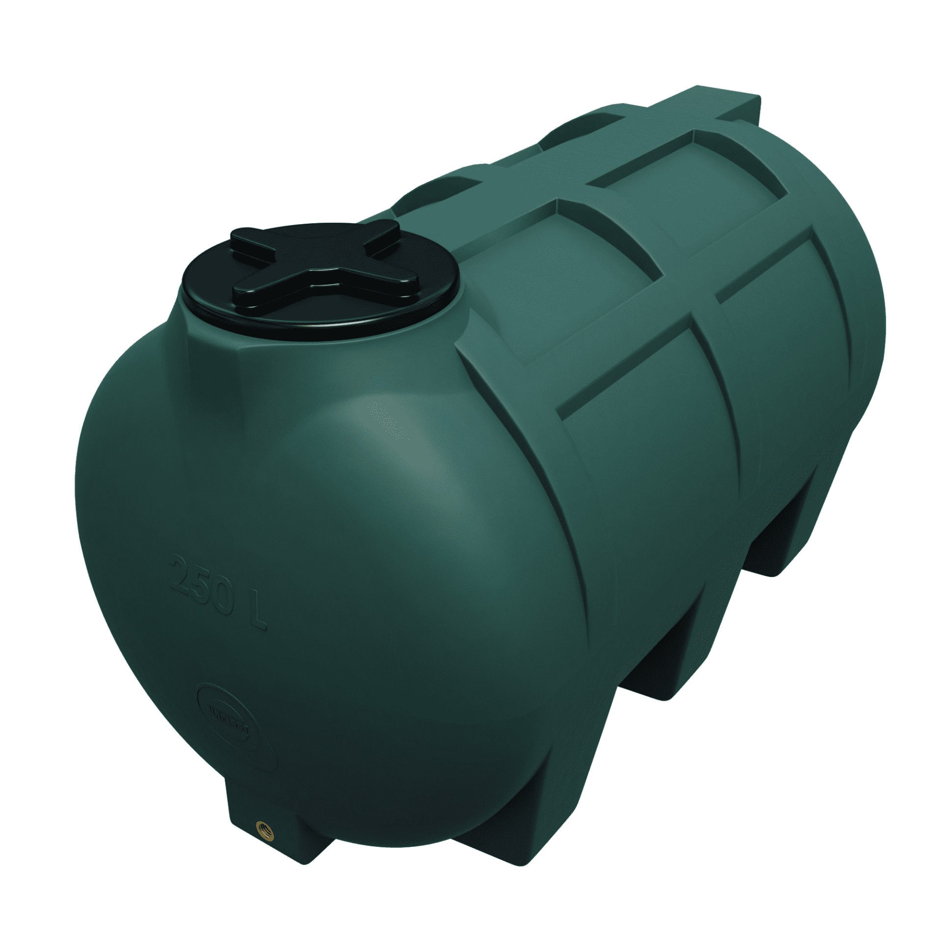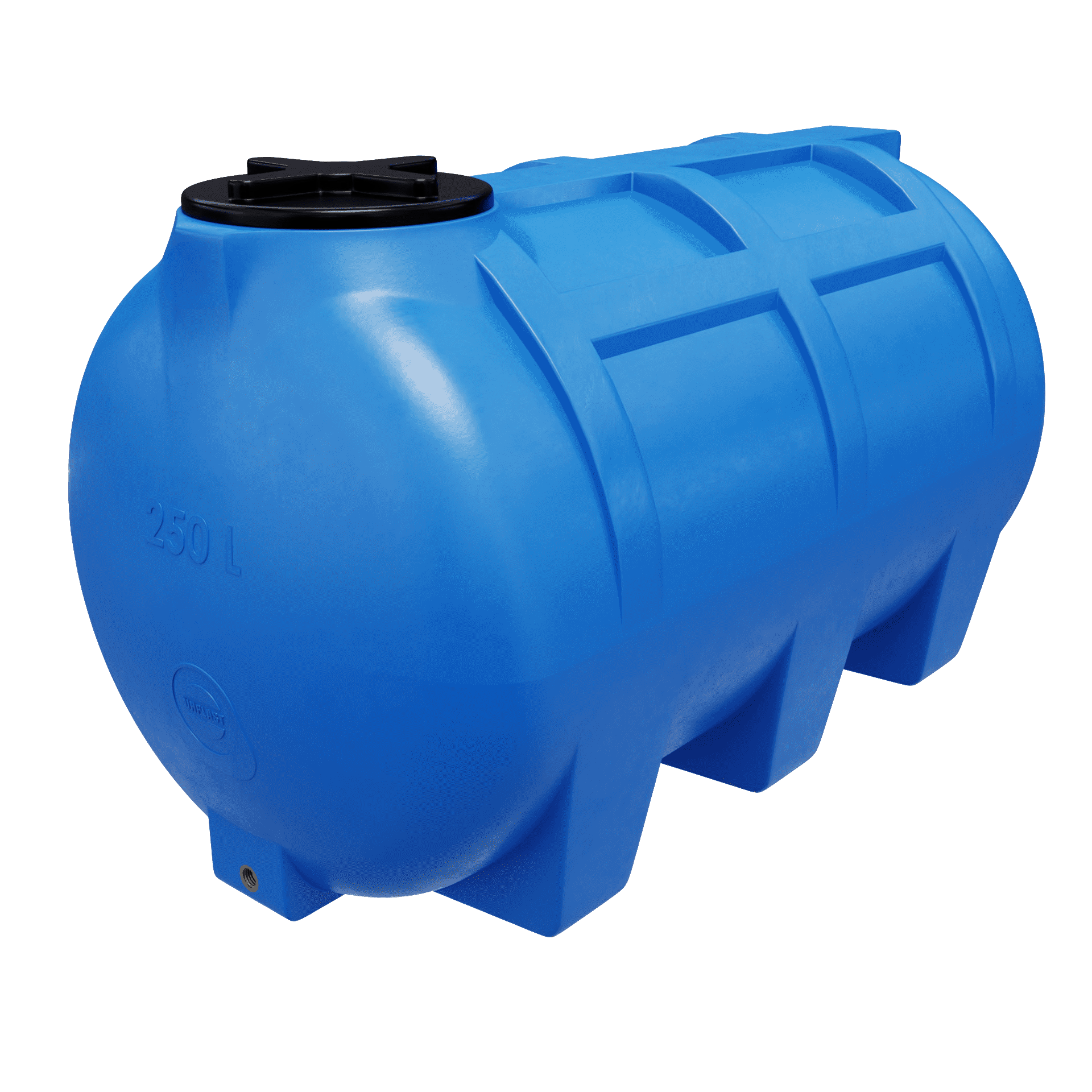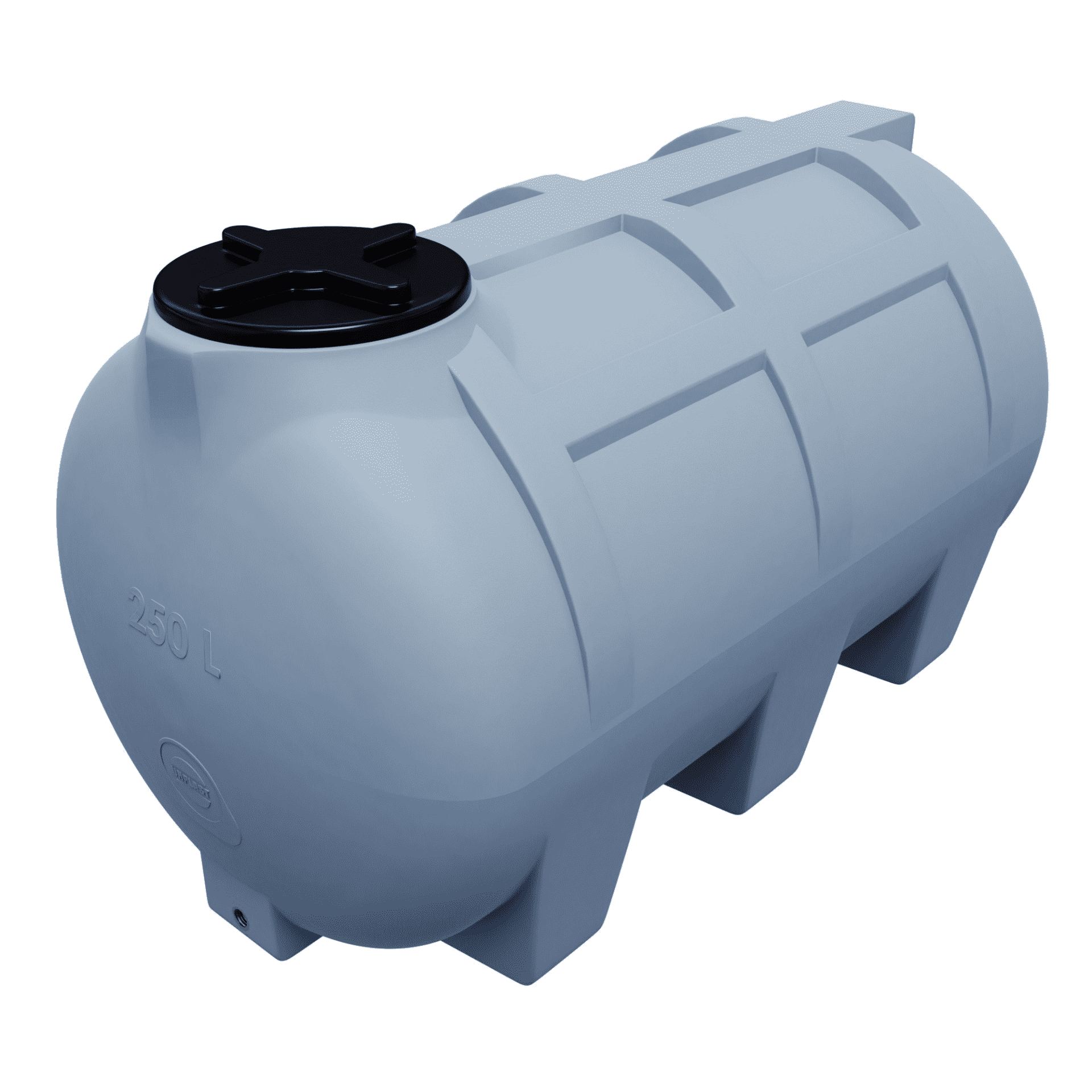 Ten 250-litrowy, poziomy zbiornik z polietylenu spożywczego to uniwersalne rozwiązanie do przechowywania wody pitnej, deszczówki i innych cieczy użytkowych.