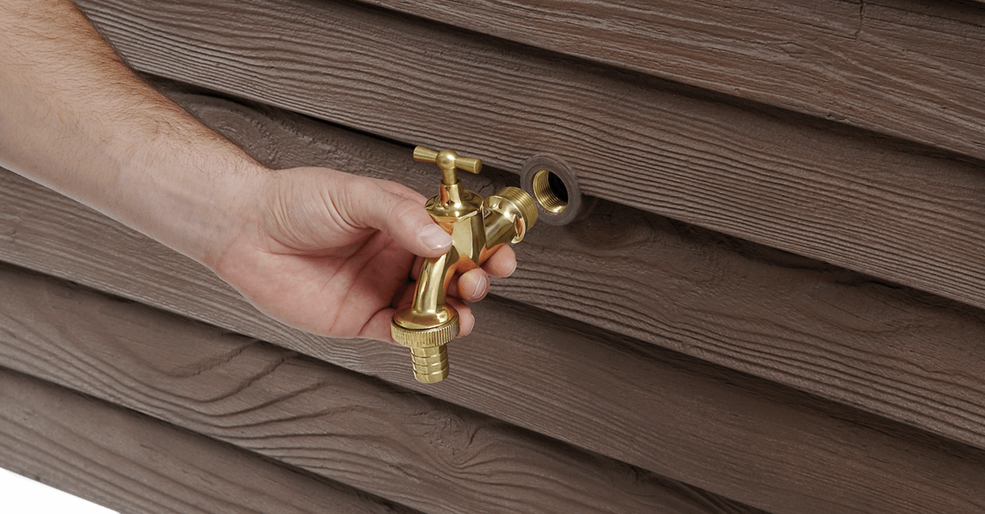Zbiornik WOODY jest odporny na działanie promieni UV oraz zmienne warunki atmosferyczne, co gwarantuje jego trwałość przez lata. Wbudowane dwa mosiężne gwinty pozwalają na szybkie i wygodne podłączenie kranika lub węża – bez potrzeby używania wiertarki. Dodatkowo pojemnik jest szczelny i stabilny.