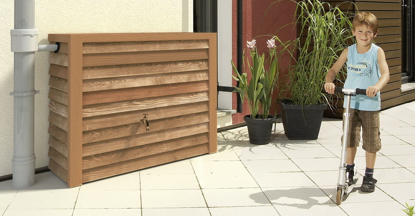 Zbiornik na deszczówkę przyścienny WOODY 350L to wyjątkowe połączenie estetyki, funkcjonalności i troski o środowisko. Wykonany z wysokiej jakości tworzywa sztucznego, do złudzenia przypomina naturalne drewno – każdy egzemplarz ma unikalną fakturę, uzyskaną w specjalnym procesie produkcyjnym. Jasny, ciepły odcień drewna świetnie wkomponuje się w ogród, taras lub elewację domu.