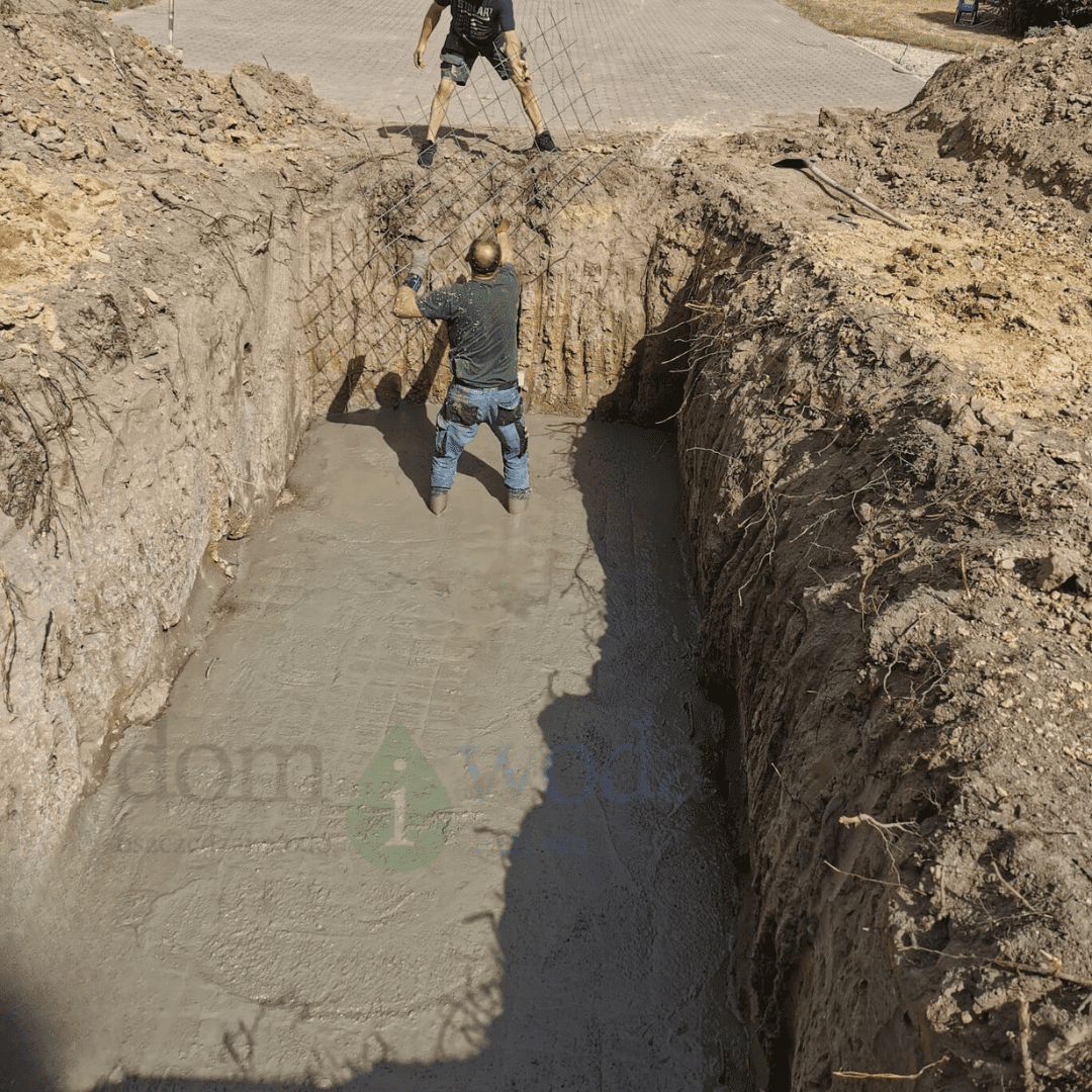 Jeśli wody gruntowe nie przekraczają 1,6–1,7 m głębokości, wystarczy suchy beton B25 z siatką zbrojeniową. Szczegółowy opis montażu dostarczany jest z produktem lub na życzenie klienta.