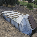 Wystające ponad grunt części piwniczki należy obłożyć styrodurem, a następnie całość zabezpieczyć geowłókniną i przysypać ziemią.