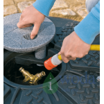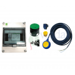 Jego zadaniem jest dopełnianie zbiornika wodą wodociągową w przypadku braku deszczówki. Pozwoli to na stałą pracę systemu nawadniającego z wykorzystaniem pompy zatapialnej w zbiorniku, niezależnie od występowania opadu atmosferycznego. W skład zestawu wchodzi skrzynka sterownika, wyłącznik pływakowy, zawór elektromagnetyczny 1” i skrzynka ogrodowa. Skrzynkę sterowniczą montuje się na płaskiej ścianie i podłącza ją do źródła zasilania, np. w domu. Do skrzynki należy doprowadzić przewody od elektrozaworu oraz wyłącznika pływakowego. Ten pierwszy montujemy w skrzynce ogrodowej na rurze doprowadzającej wodę wodociągową prowadzoną w gruncie. Wyłącznik pływakowy należy zamontować w zbiorniku i odpowiednio ustawić ramię jego pracy, tj. poziom minimalnym, przy którym następuje otwarcie elektrozaworu i dopływ wody czystej oraz poziom maksymalnym, przy którym zawór się zamyka.