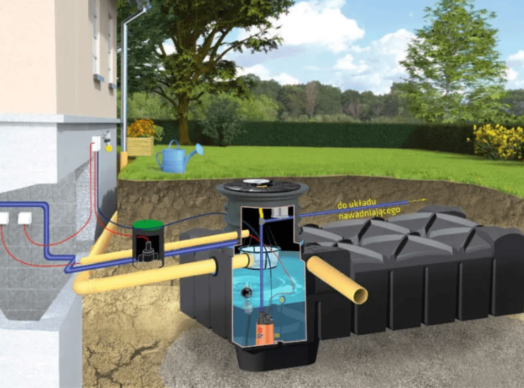 2.4.3 Rura serwisowa (przelewowa) ma na celu zabezpieczenie zbiornika przed przepełnieniem i zapobieganie cofaniu się wody z powrotem do budynku (np. piwnicy).
