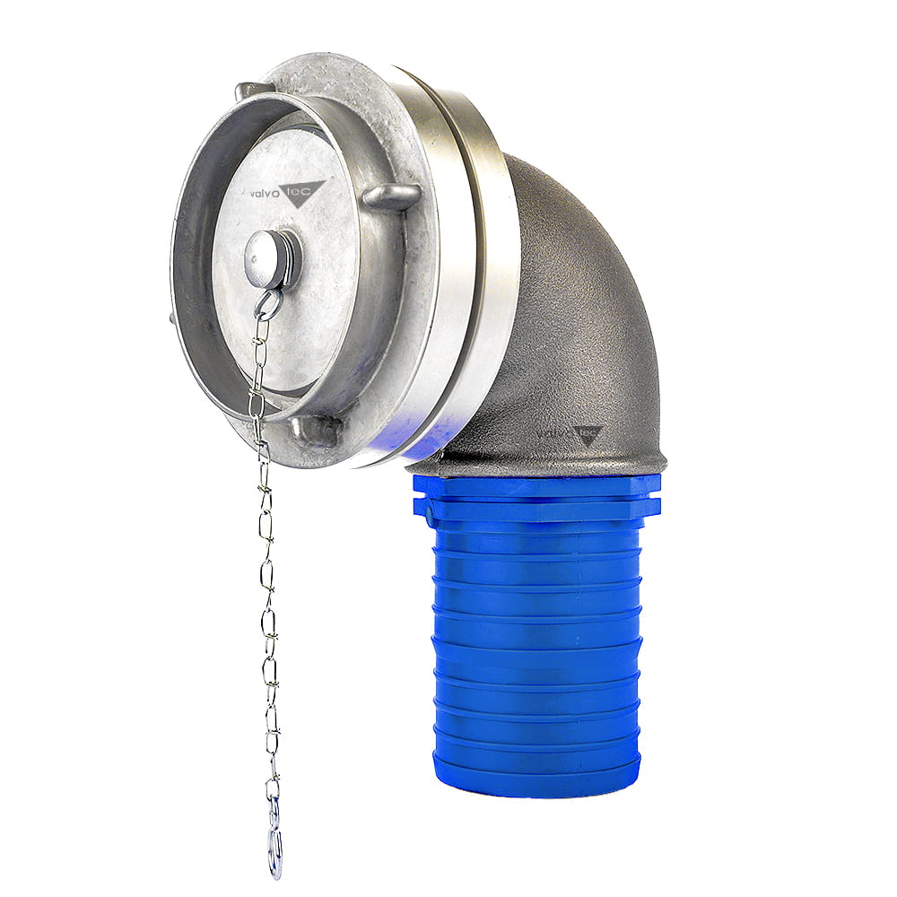 Króciec z PVC przeznaczony do przyłączenia węża ma średnicę 102mm i pasuje do większości węży asenizacyjnych, złącze kłowe typu STORZ typ110 (4 cale). Połączenie z rurą kanalizacyjną, wyprowadzaną często ze zbiornika, można wykonać wypełniając szczelinę pomiędzy kielichem, a niebieskim króćcem masą uszczelniającą (np silikonem) i sznurem uszczelniającym (np z konopii).