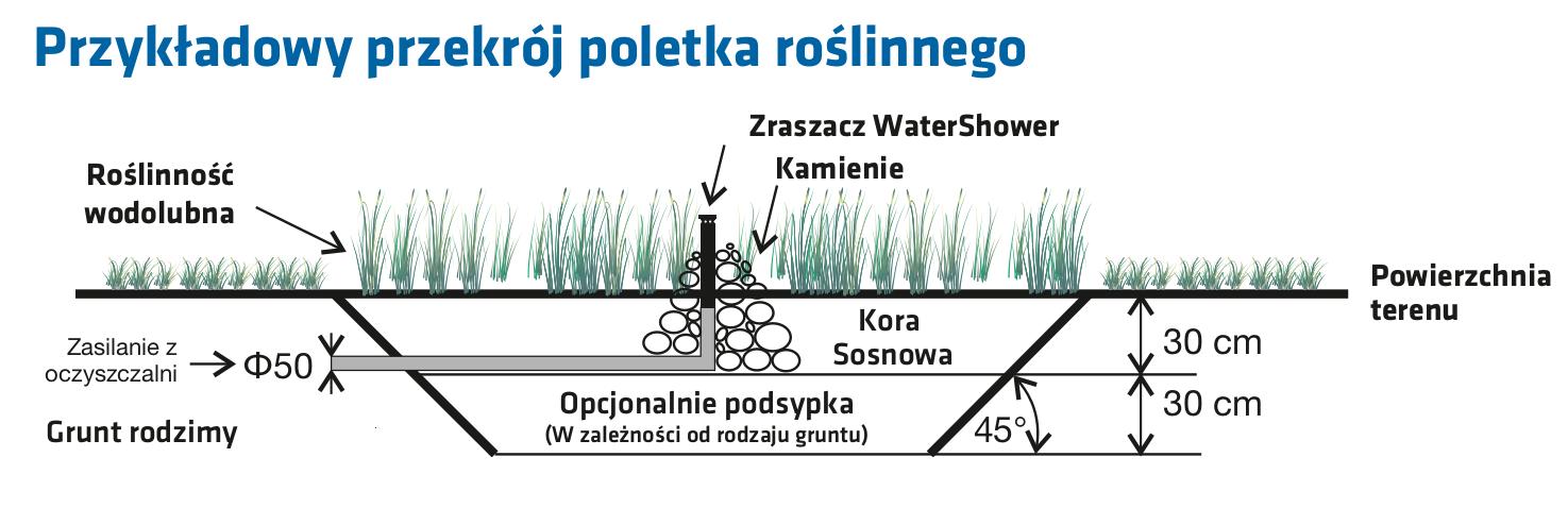 W indywidualnych rozwiązaniach, jeśli zaistnieje taka potrzeba, istnieje możliwość zwiększenia średnicy otworów zraszaczy.
