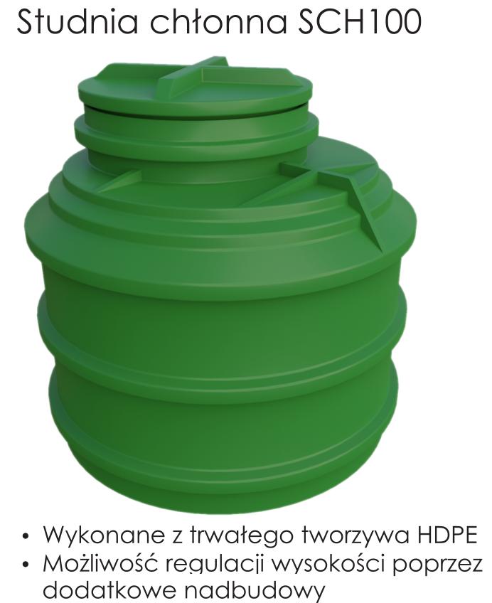 Studnia chłonna wykonana jest z monolitycznego zbiornika z polietylenu wysokiej gęstości.