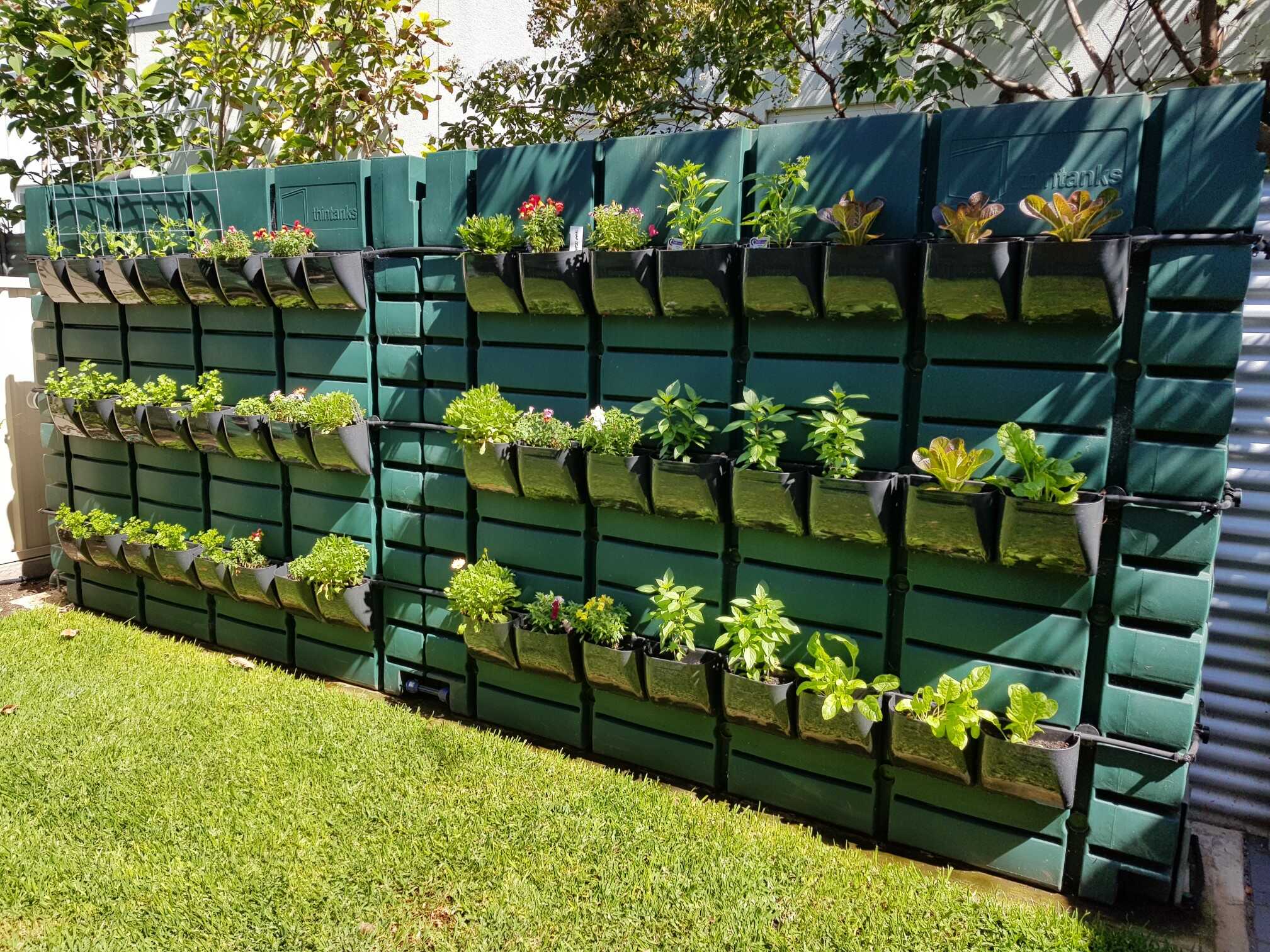 Stylowe ThinPots można zamontować po dowolnej stronie zbiornika za pomocą dołączonych adapterów. Zalecamy montowanie ich z linią nawadniania kropelkowego (dostępną w większości centrów ogrodniczych). Adapter ThinPot jest wprowadzany do otworu drenażowego. Otwór na hak jest otwarty u góry i ustawiony poziomo. Doniczki ThinPots można zawiesić na tym haku za pomocą pręta (13 mm / 1/2") lub węża do nawadniania kropelkowego (13 mm / 1/2"). Doniczki ThinPots mają z tyłu otwór do ułożenia węża kroplującego. W celu zamontowania, ThinPots są zawieszane na wężu lub alternatywnym pręcie.