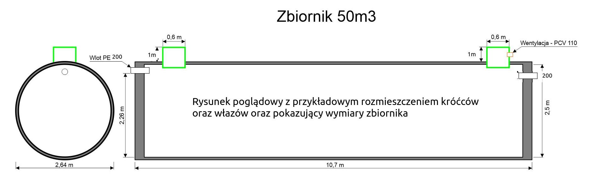 - W przypadku montażu zbiornika w przejeździe wymagana jest płyta żelbetowa, której projekt powinien zostać przygotowany przez projektanta.