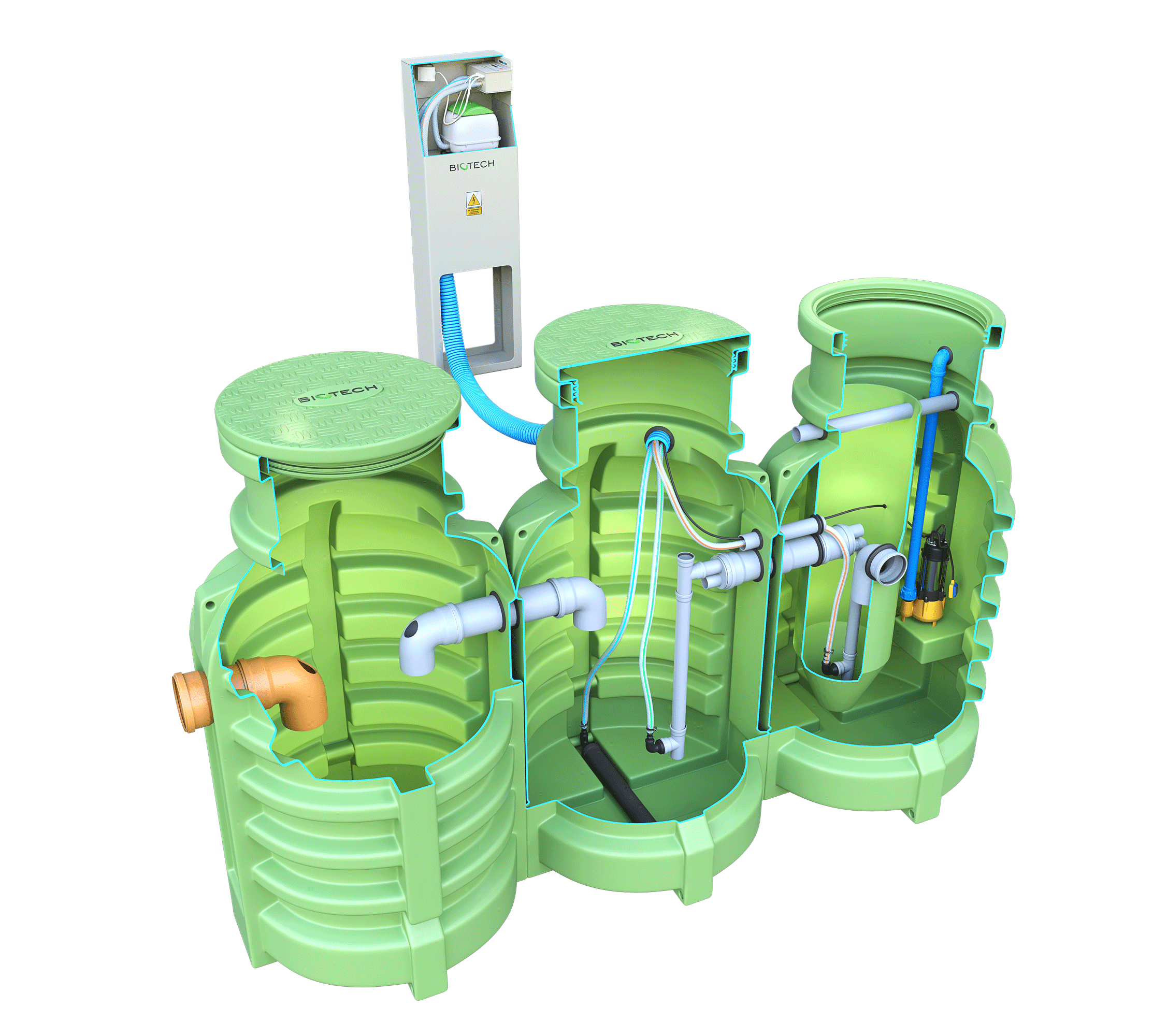 Montaż biologicznej oczyszczalni ścieków BIOTECH, należy prowadzić w oparciu o niniejszą instrukcję montażu producenta z uwzględnieniem warunków gruntowo-wodnych, prawa budowlanego