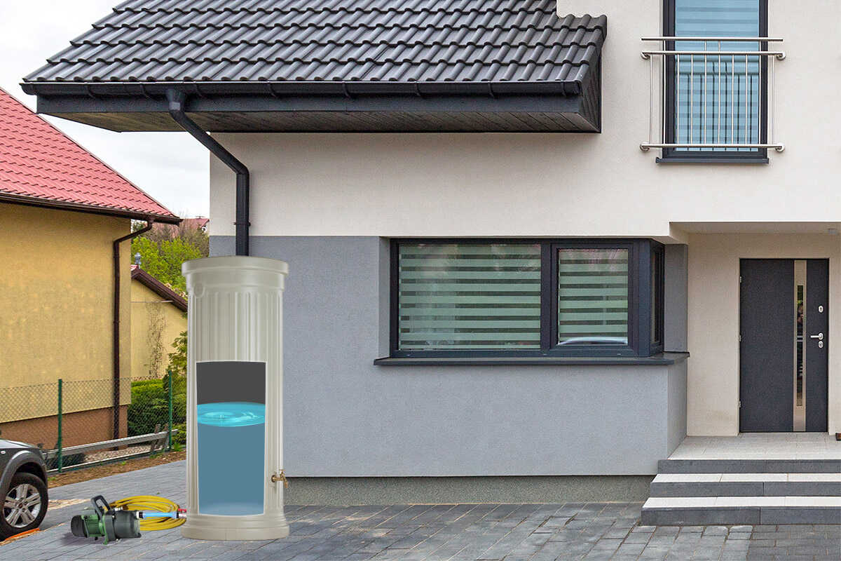 Nowoczesny design w formie kolumny oraz kolor sprawiają, że zbiornik świetnie komponuje się z otoczeniem ogrodu, tarasu lub elewacji domu – stanowi zarówno praktyczne, jak i dekoracyjne rozwiązanie.