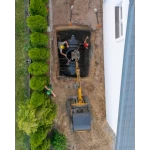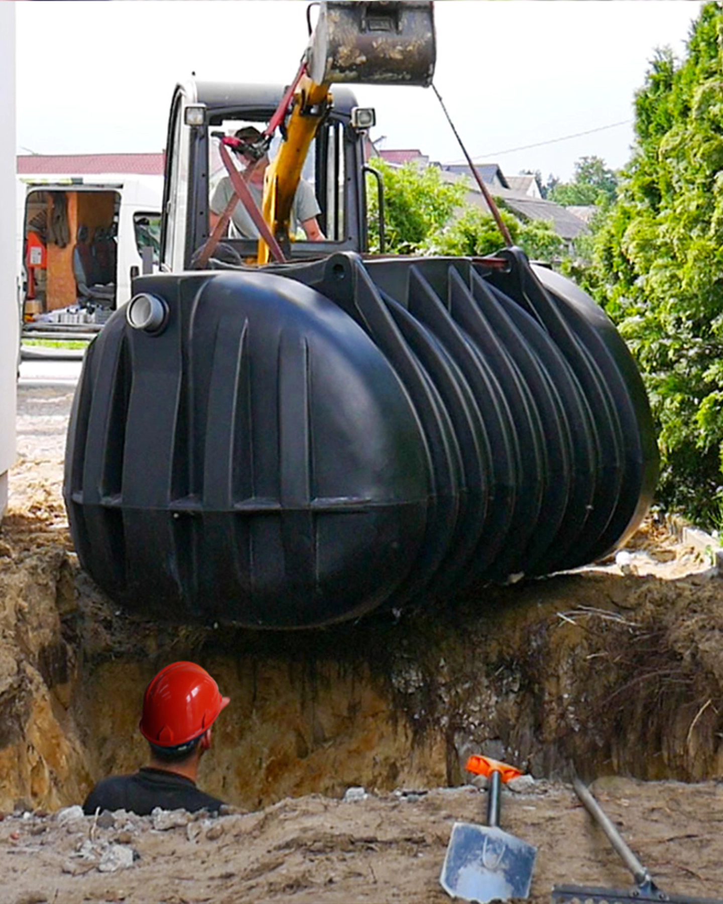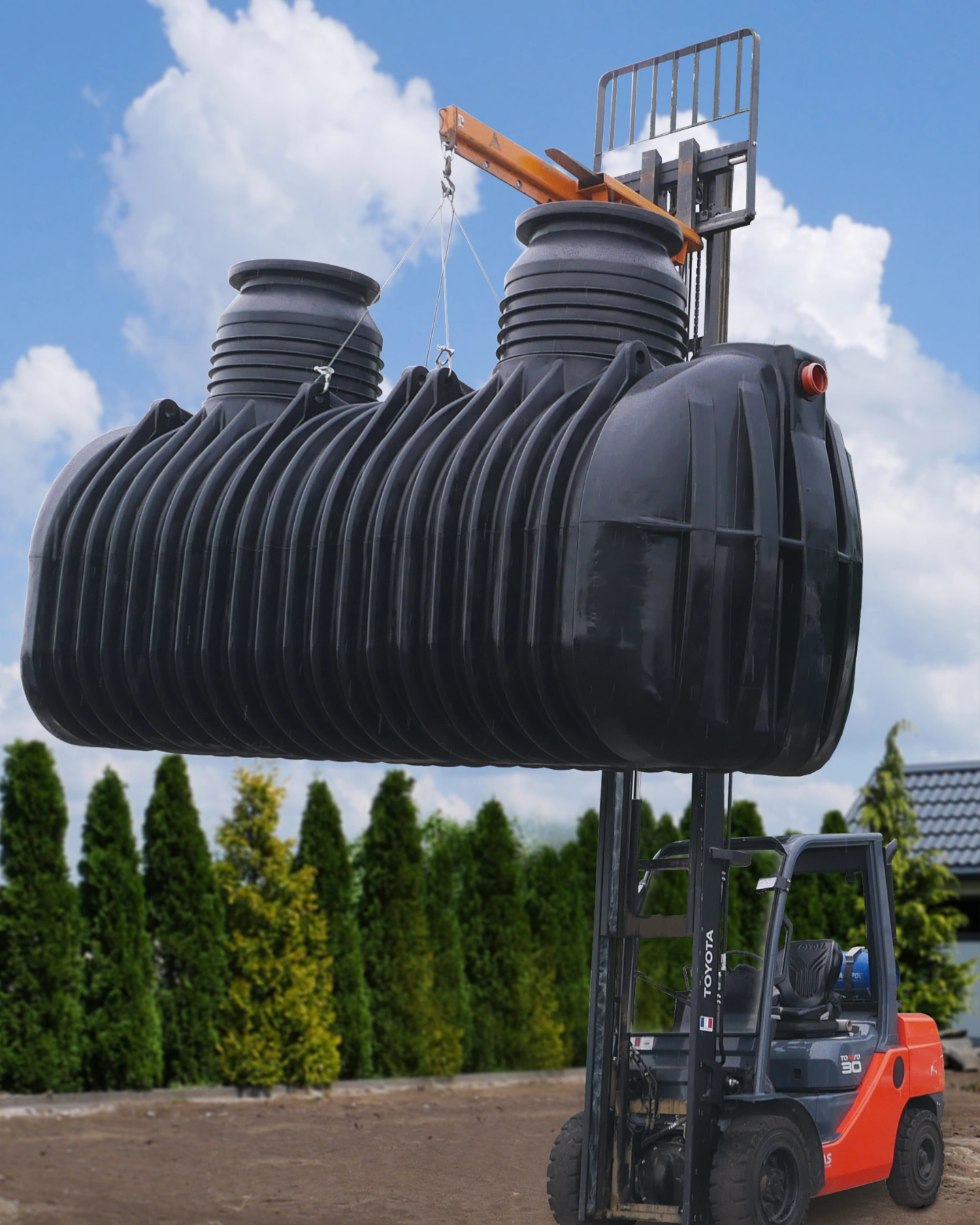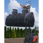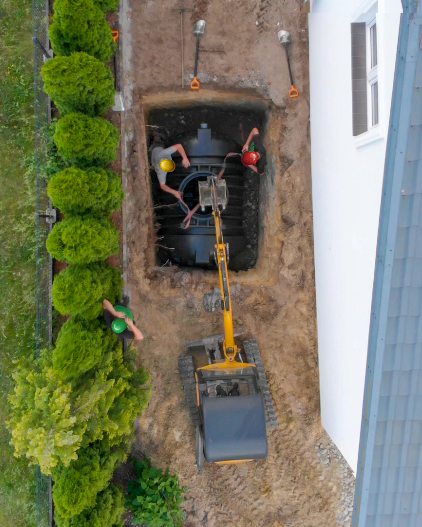 System stanowi monolityczny zbiornik. Woda deszczowa zbierana jest z dachu poprzez system rynnowy, a następnie doprowadzana rurą spustową do zbiornika.