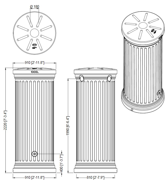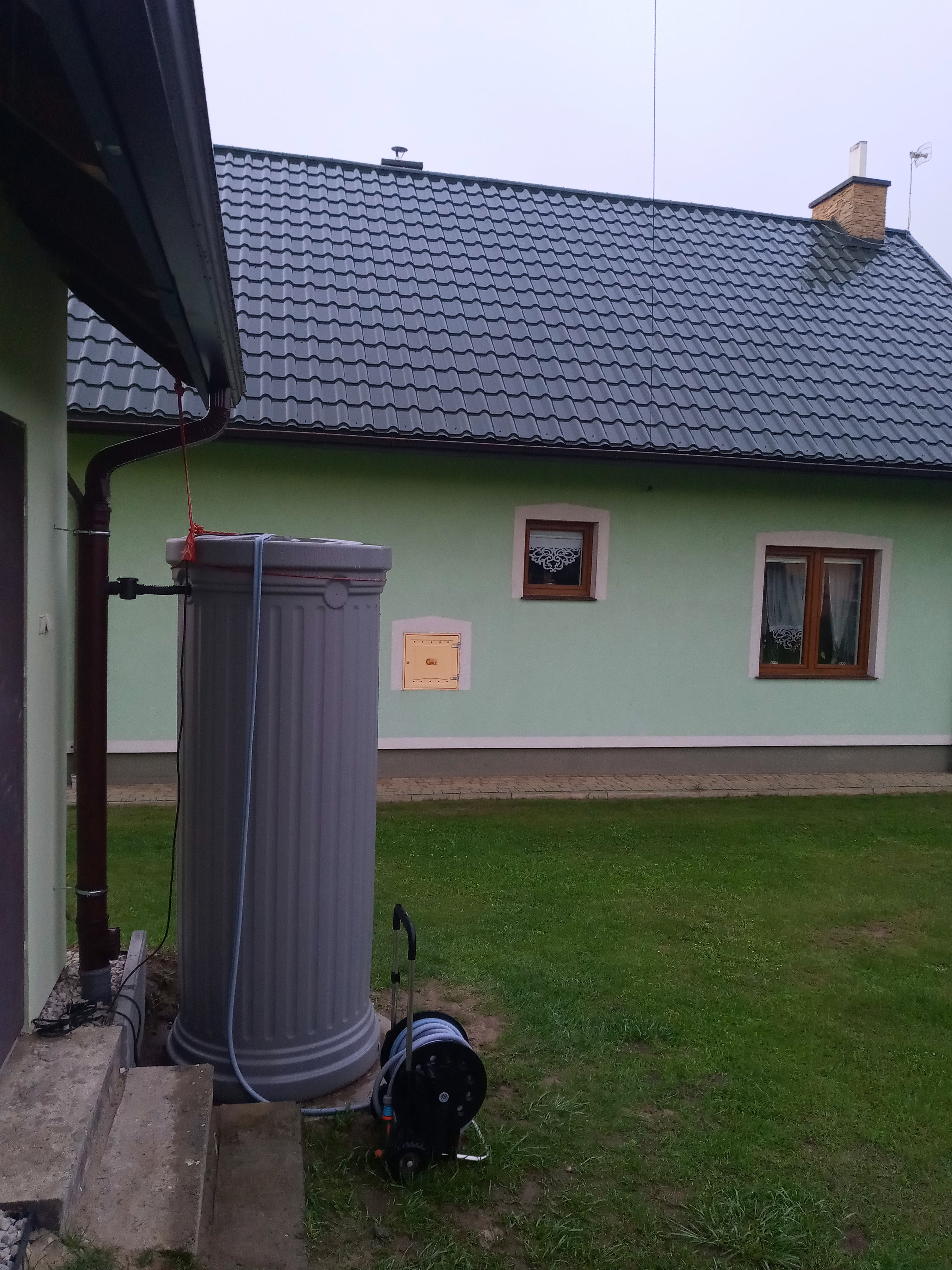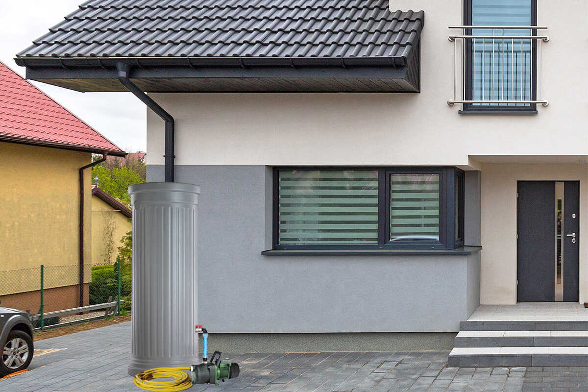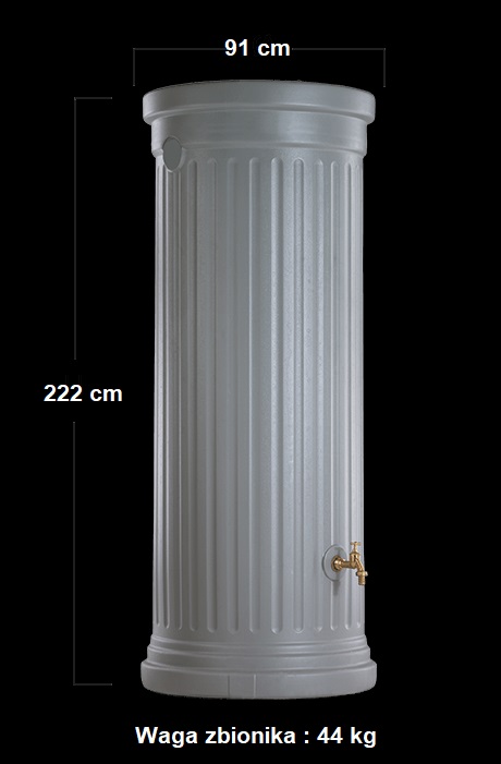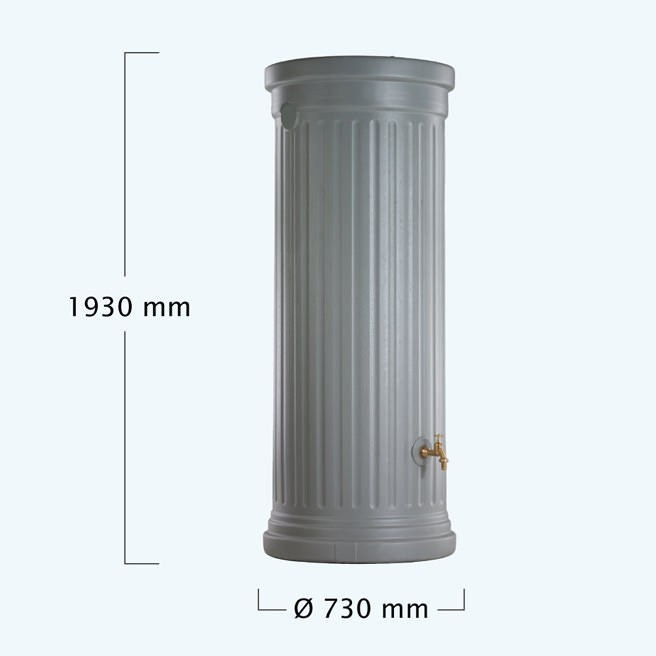 Nowoczesny design w formie kolumny oraz kolor sprawiają, że zbiornik świetnie komponuje się z otoczeniem ogrodu, tarasu lub elewacji domu – stanowi zarówno praktyczne, jak i dekoracyjne rozwiązanie.