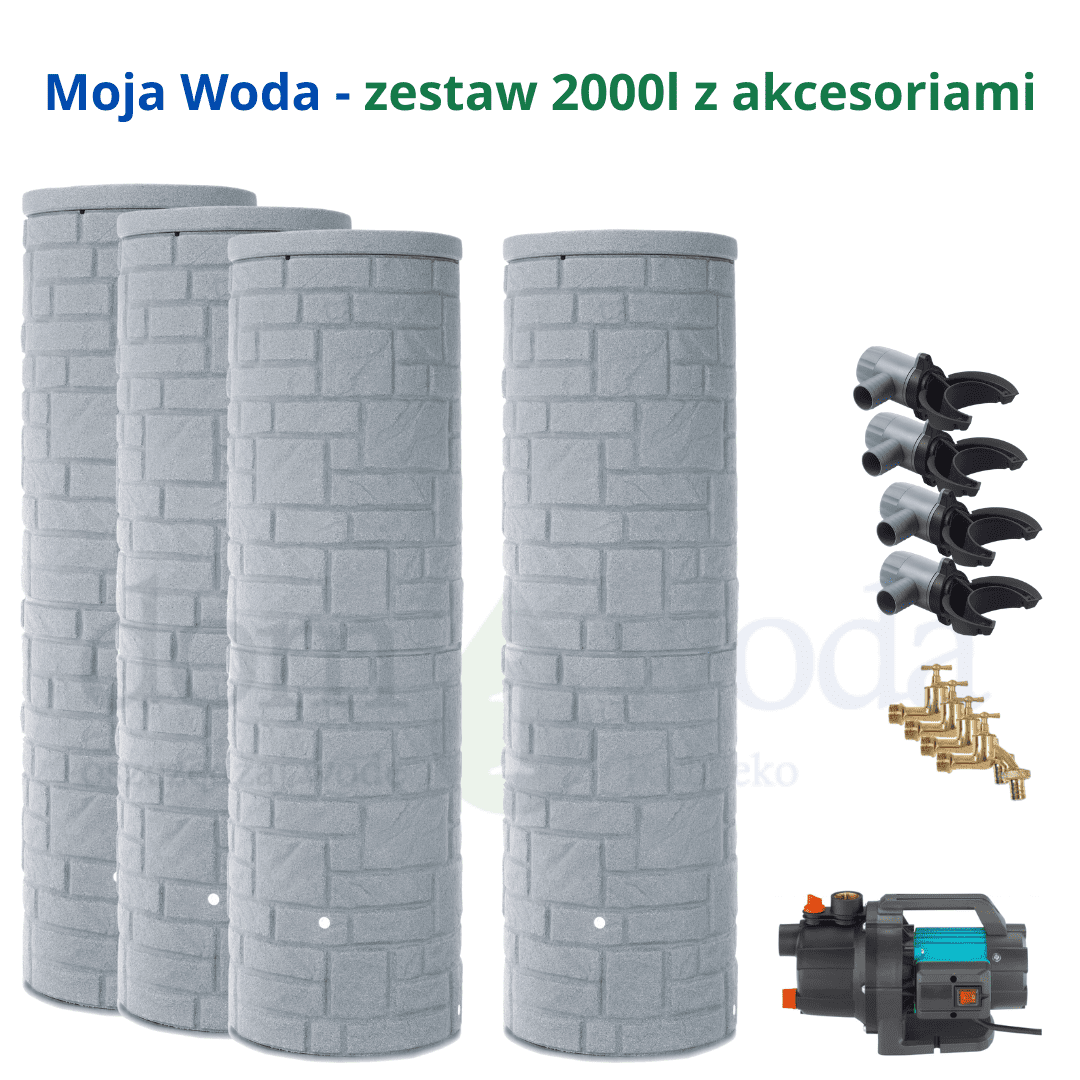 Dostępny jest też zestaw z pompą powierzchniową . Dzięki pompie w zestawie jest ciśnienie, nie musisz zatem dźwigać konewek, wystarczy, że podlączysz do niej wąż ogrodowy, a Twoje podlewanie, czy też porządki wokół domu będą łatwe i przyjemne.