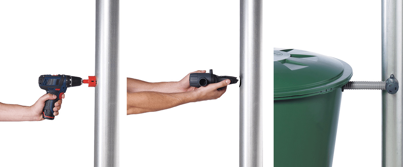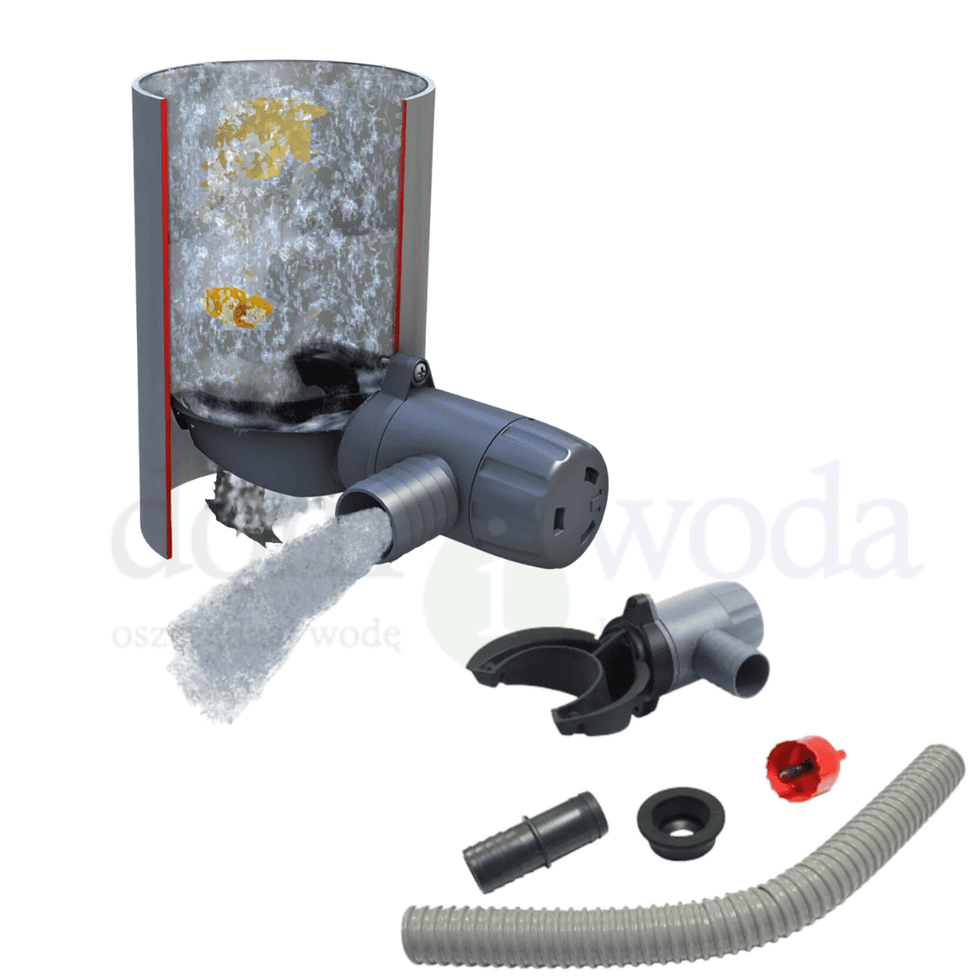 W zestawie znajduje się zbieracz Rapido, który ma prosty montaż. Wystarczy wywiercić otwór w rurze spustowej - podłączyć zbieracz - i gotowe. Wyrzynarka jest w zestawie.