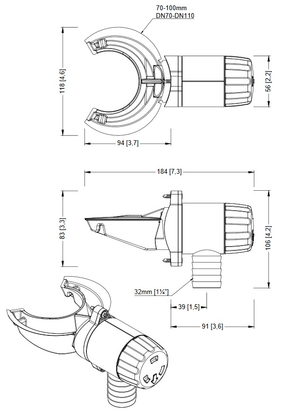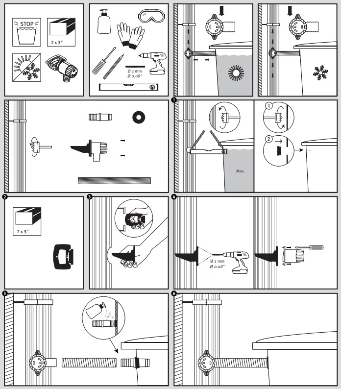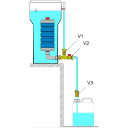 dwa boczne otwory spustowe z korkami, służące do opróżniania zbiornika, podłączenia pompy naziemnej lub połączenia dwóch zbiorników w jeden system (zestaw połączeniowy nie jest w zestawie).