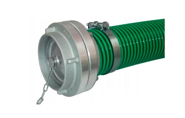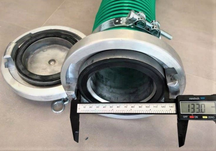 Króciec z PVC przeznaczony do przyłączenia węża ma średnicę 102mm i pasuje do większości węży asenizacyjnych, złącze kłowe typu STORZ typ110 (4 cale). Połączenie z rurą kanalizacyjną, wyprowadzaną często ze zbiornika, można wykonać wypełniając szczelinę pomiędzy kielichem, a niebieskim króćcem masą uszczelniającą (np silikonem) i sznurem uszczelniającym (np z konopii).