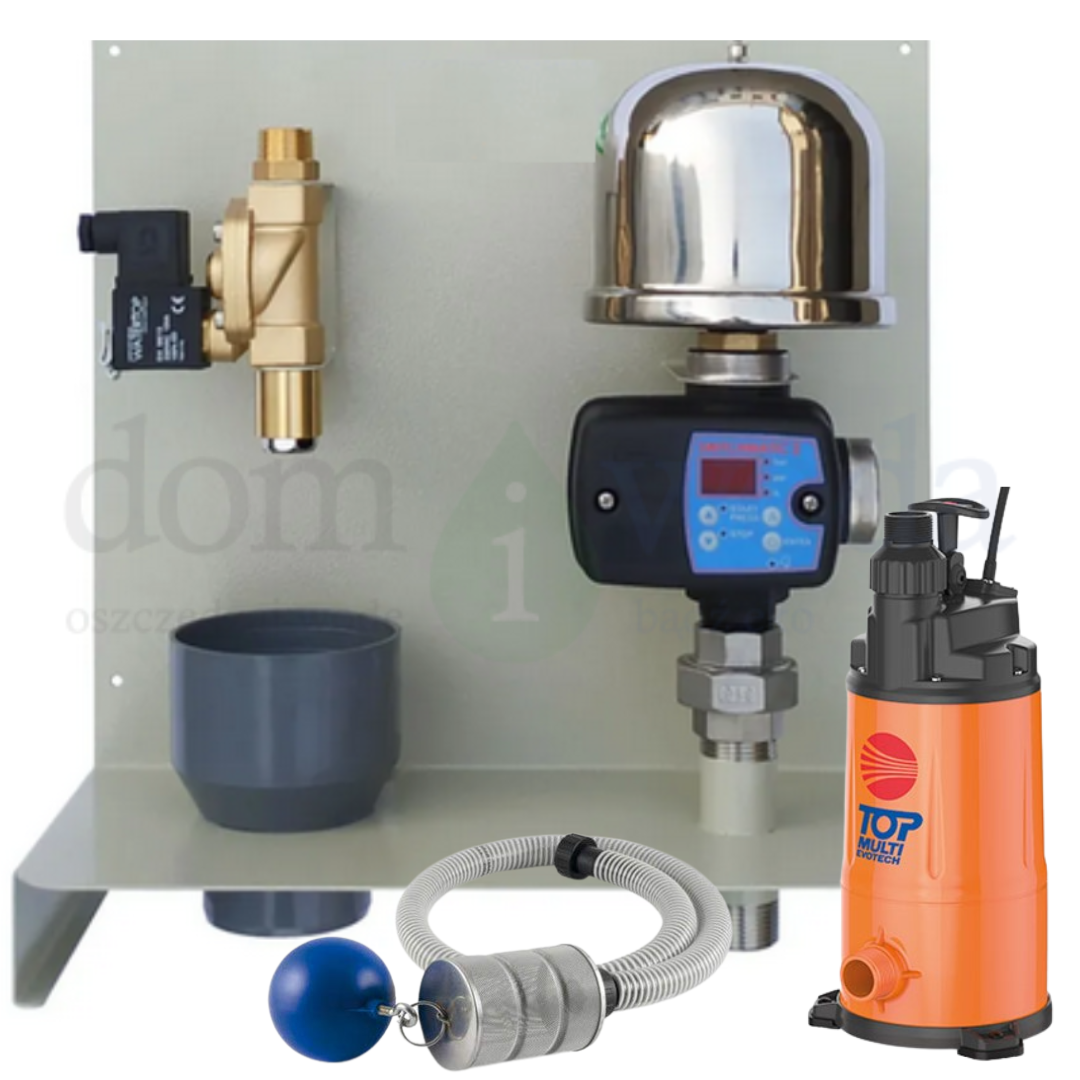 Zestaw wyposażony jest w ciśnieniową pompę zatapialną, która jest zbudowana z wysokiej jakości technopolimerów, wzmacnianych włóknem szklanym, co ma doskonałą odporność. Posiada kabel zasilający o długości 10m