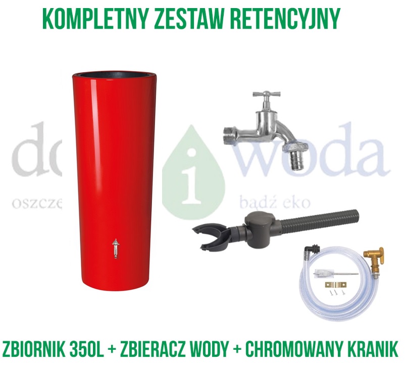 Zbiornik na deszczówkę w kolorze dojrzałego pomidora ma pojemność 350 litrów.