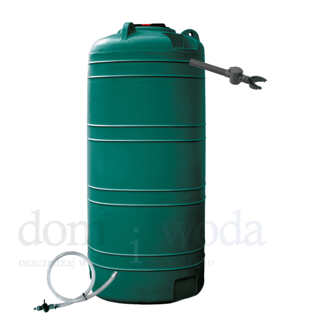 Naziemny zbiornik na deszczówkę Grande1000l, zielony, zbieracz Speedy, zestaw do poboru wody