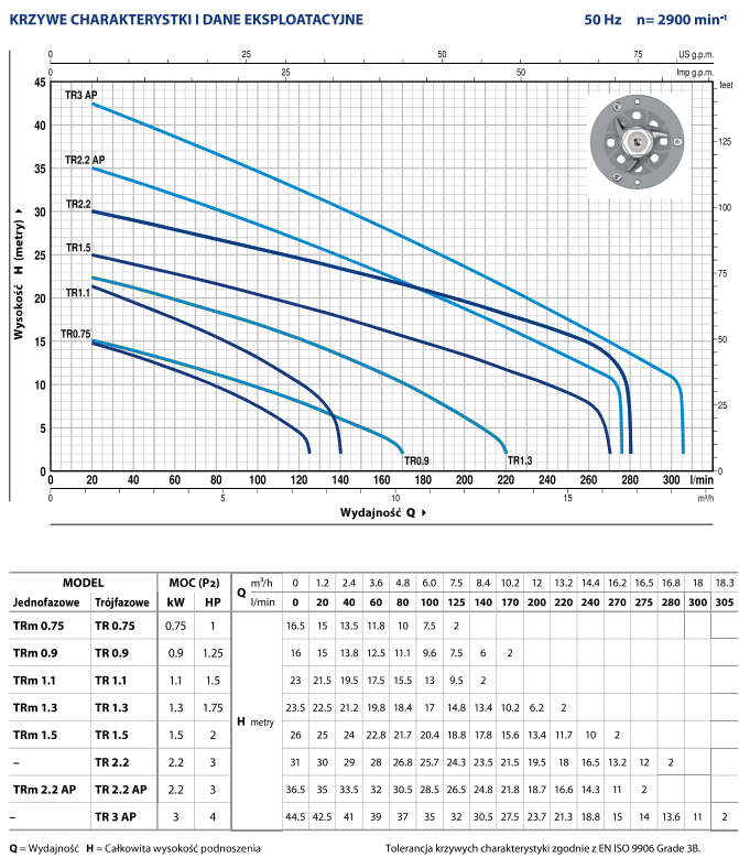 350 mm dla modeli TR 1.5, TR 2.2, TR 3