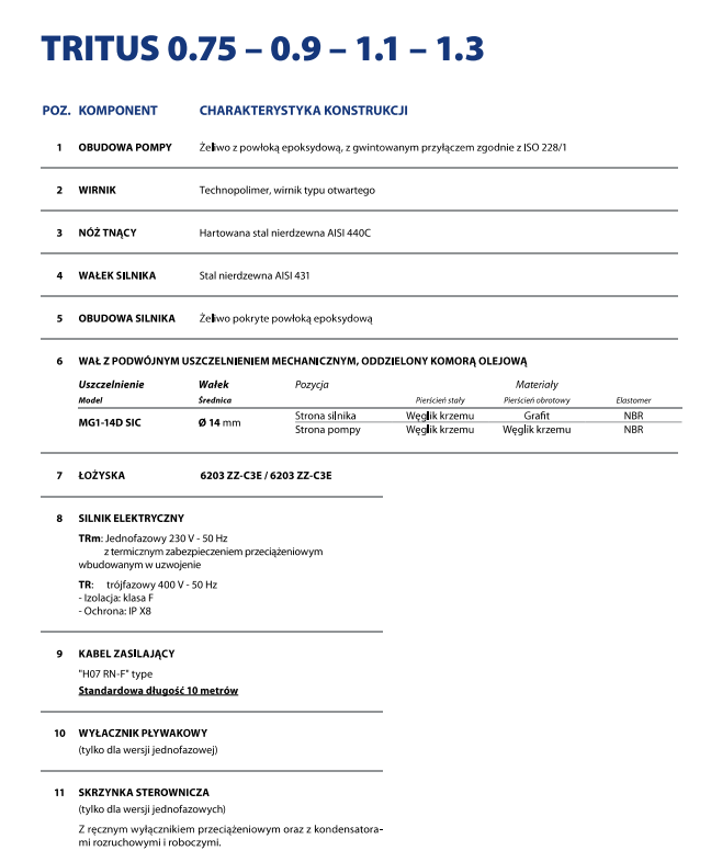 - Uszczelnienie mechaniczne: węglik krzemu/węglik krzemu/NBR