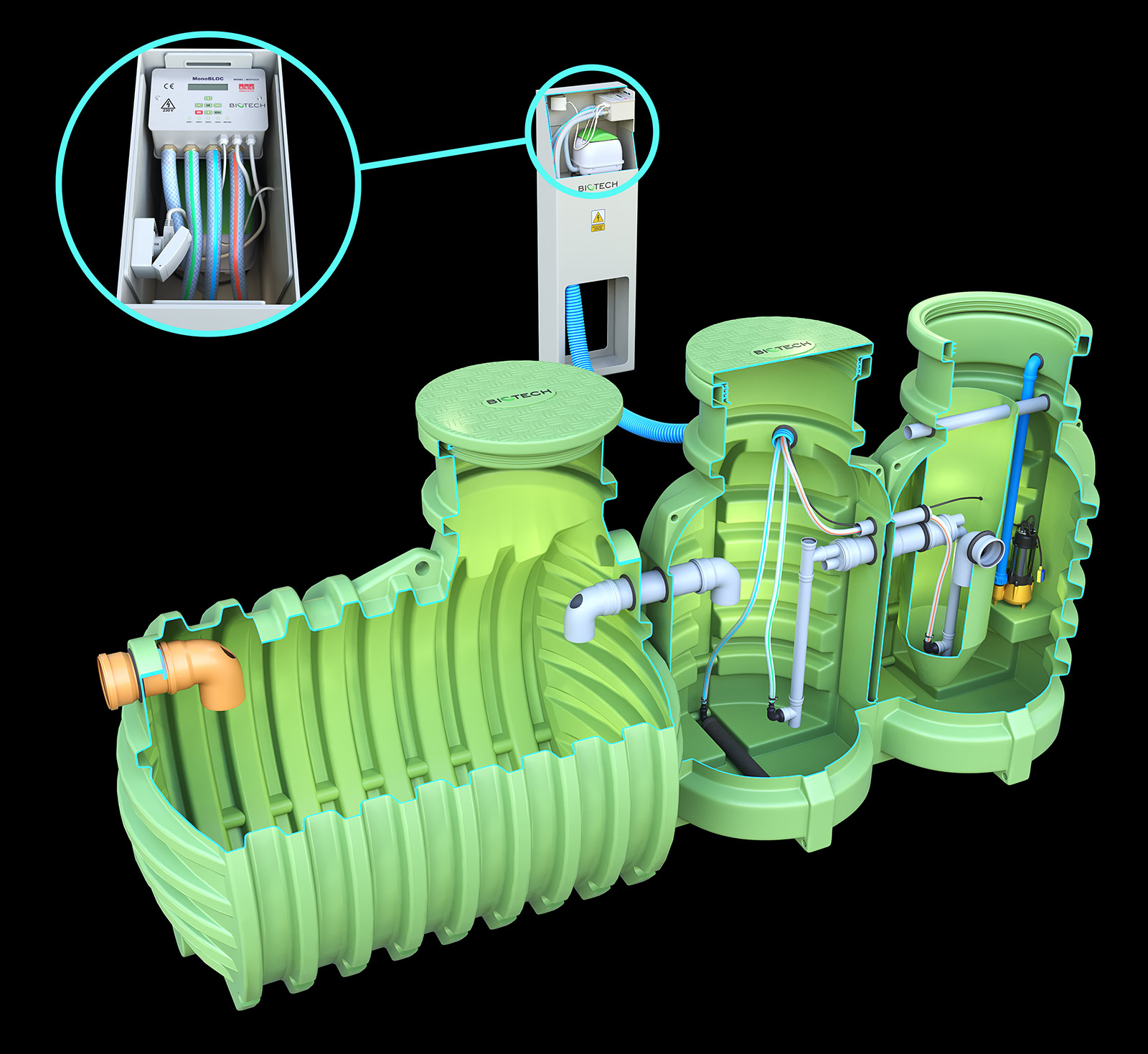 Przydomowa oczyszczalnia ścieków BIOTECH 10 to ekologiczne i wydajne rozwiązanie dla dużych gospodarstw domowych. Wytrzymała konstrukcja, energooszczędność i łatwość obsługi sprawiają, że jest to inwestycja na lata, która pozwala zaoszczędzić na kosztach wywozu ścieków i przyczynia się do ochrony środowiska.