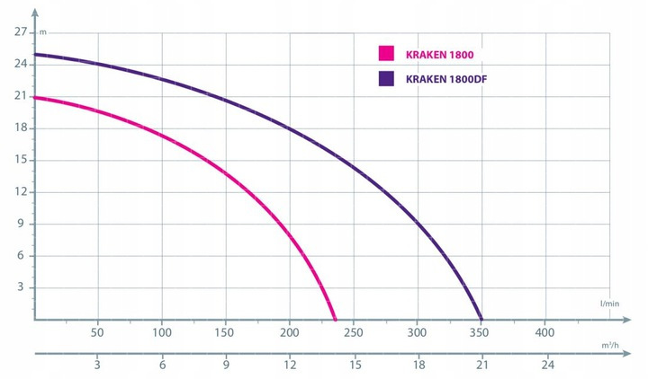 Pompa IBO KRAKEN 1800 DF to wydajne urządzenie, które zapewnia przepływ na poziomie około 100 l/min przy maksymalnej wysokości podnoszenia 23 m. Wyposażona w mechanizm rozdrabniający, idealnie sprawdzi się w systemach przepompowni ścieków, ale nie jest przeznaczona do kanalizacji ciśnieniowej.
