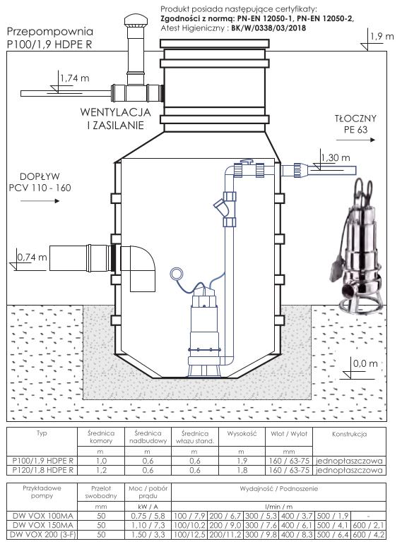 Przepompownia ścieków P100/1,9 HDPE R z pompą DW VOX 100MA 0,75 kW