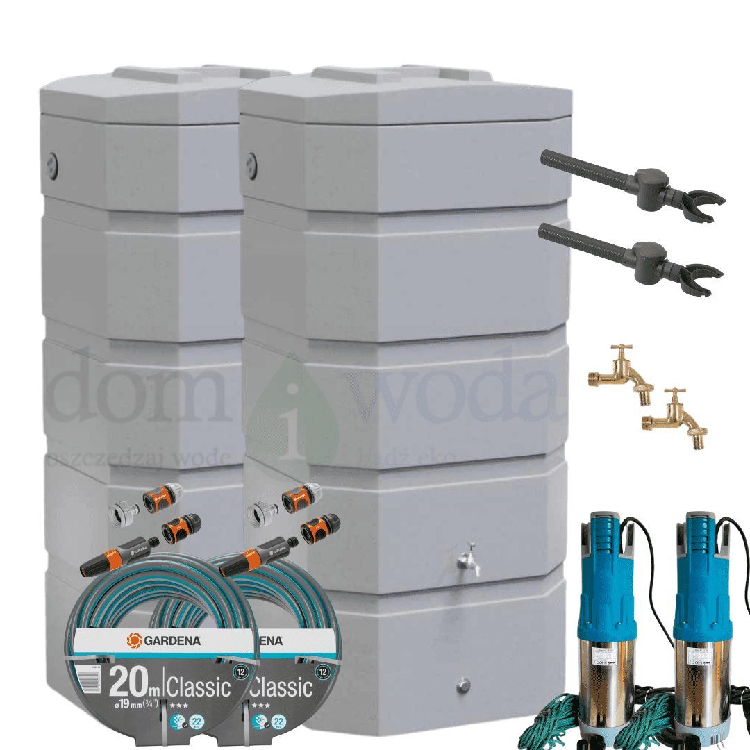 Zestaw do zbierania deszczówki z pompą zatapialną i zbiornikiem Monolit 1000 l to kompleksowe, gotowe rozwiązanie do ekologicznego podlewania ogrodu. W skład zestawu wchodzi zbiornik naziemny, zbieracz Speedy z funkcją lato/zima, automatyczna pompa zatapialna 1000 W, wąż ogrodowy 20 m, komplet szybkozłączek oraz zestaw do połączenia pompy ze zbiornikiem.
