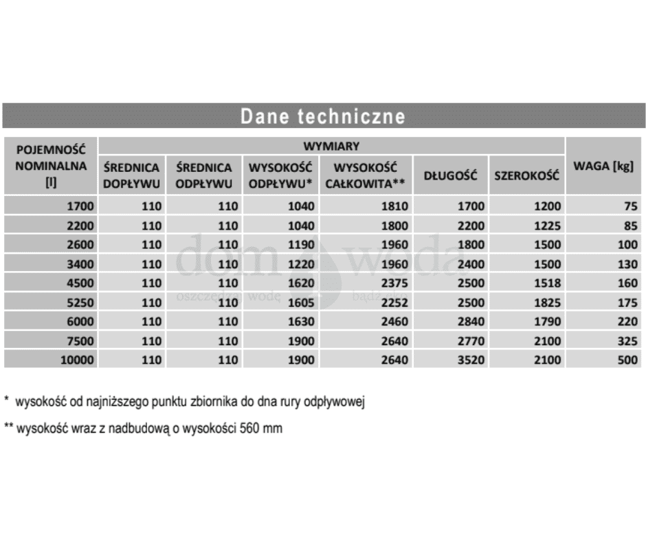 * 5250l- Wysokość całkowita zbiornika uwzglednia wysokość nabudowy, która jest jego integralną częścią zbiornika i wynosi 475 mm