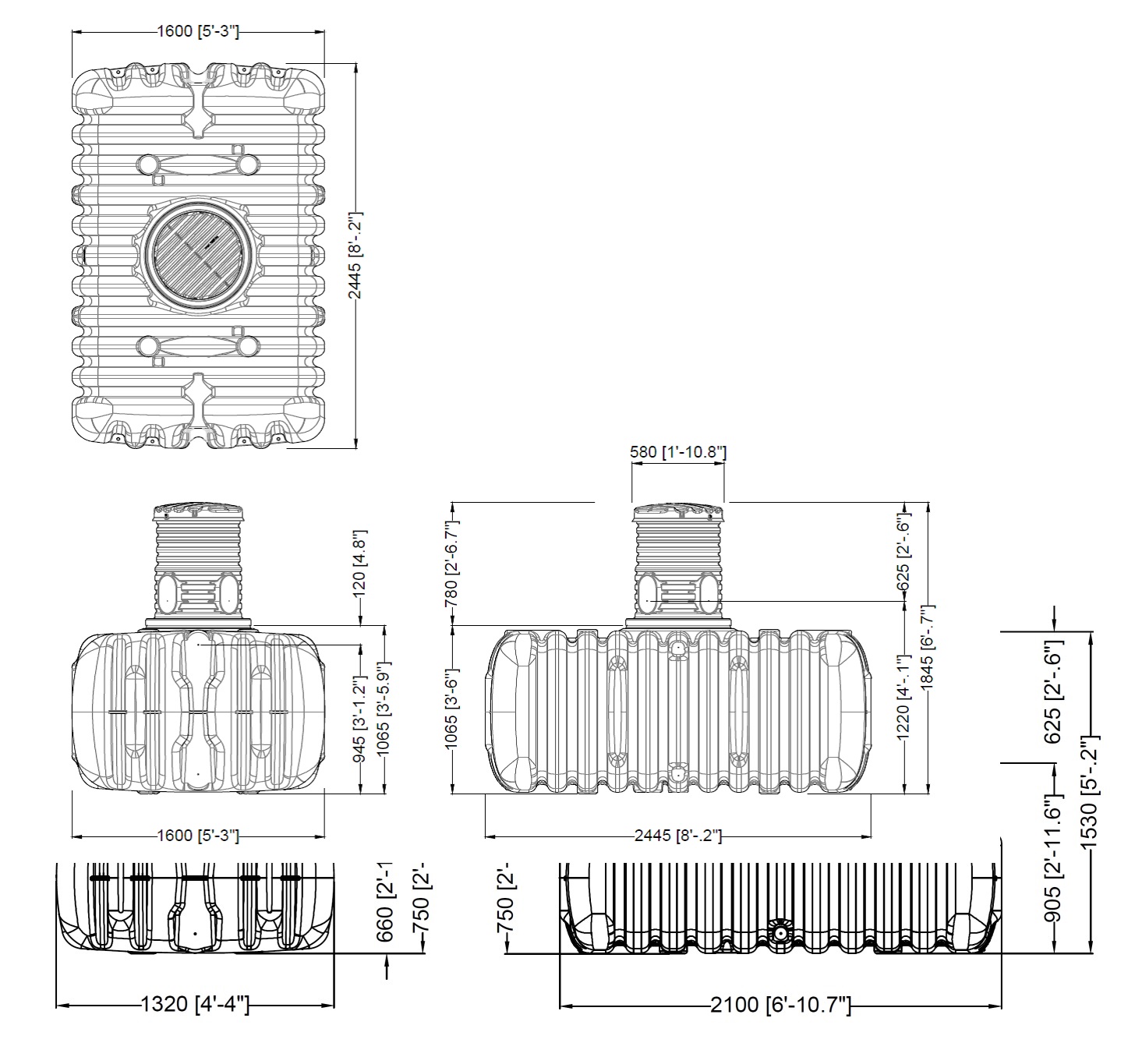 W komplecie dostarczana jest nadbudowa. Pokrywa zbiornika posiada zabezpieczenie przed otwarciem przez dzieci. Płaska konstrukcja zbiornika zapewnia niedużą głębokość wykopu i niskie koszty montażu.