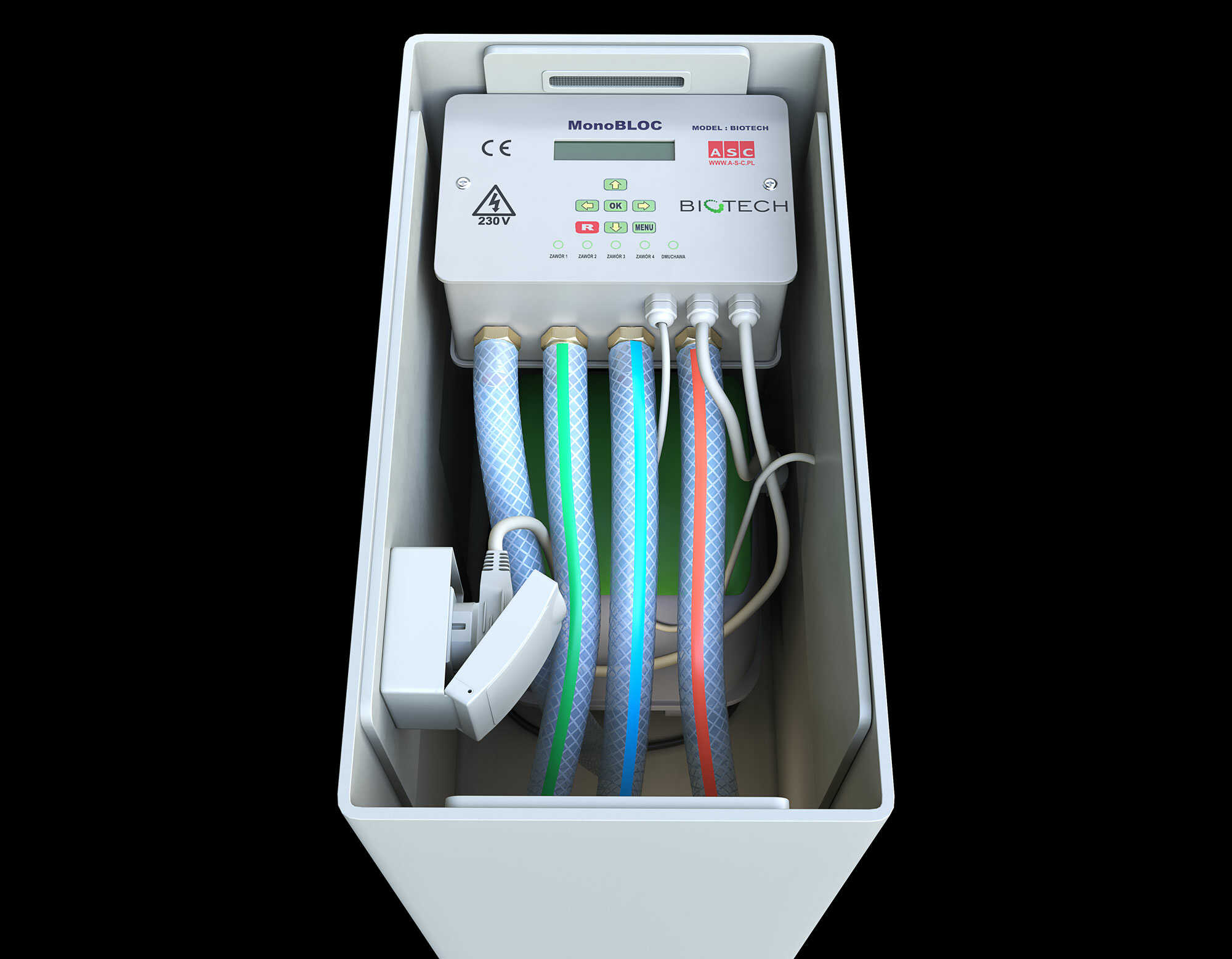Pompa ścieków oczyszczonych – zapewnia ciśnieniowe odprowadzenie wody oczyszczonej.