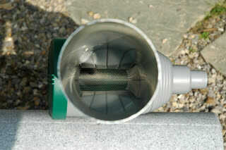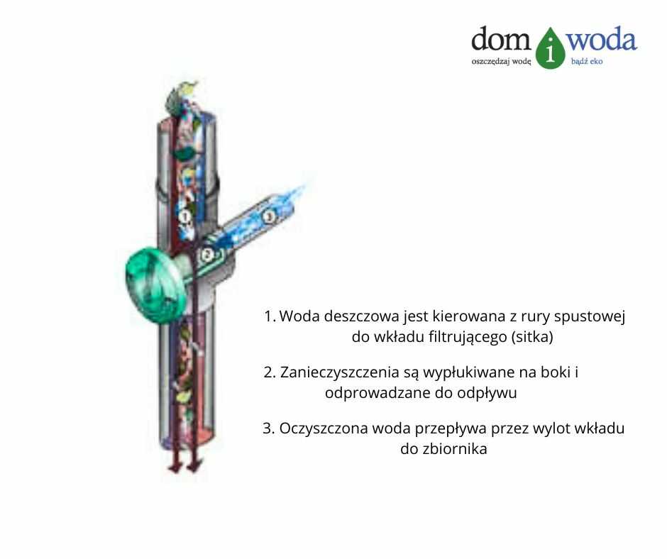 - Woda deszczowa trafia na siatkowy wkład filtrujący.