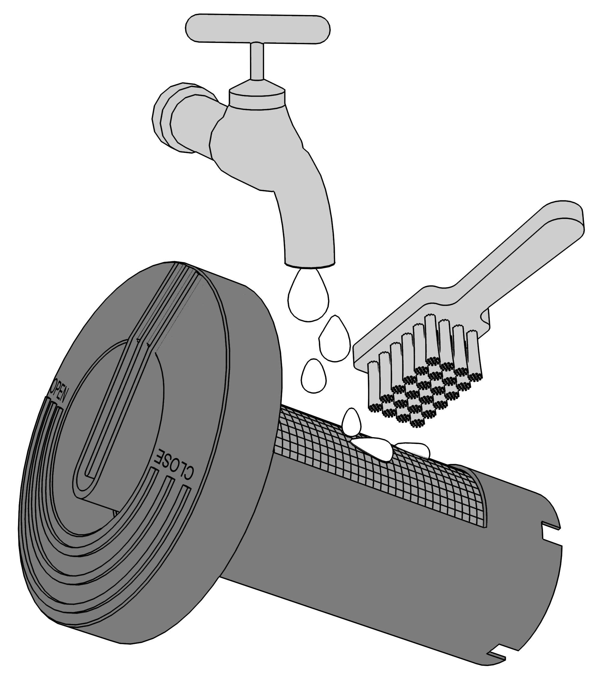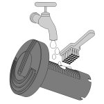 - Aby wyjąć wkład filtrujący, wystarczy go obrócić o 180° i wyciągnąć – demontaż całego urządzenia nie jest konieczny. Wkład można łatwo wyczyścić za pomocą detergentu i szczotki.